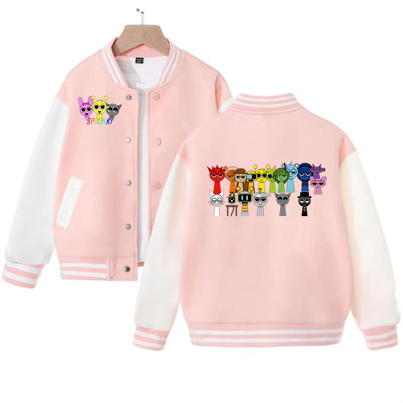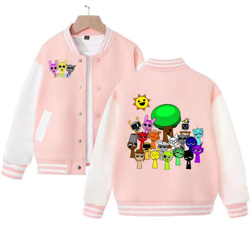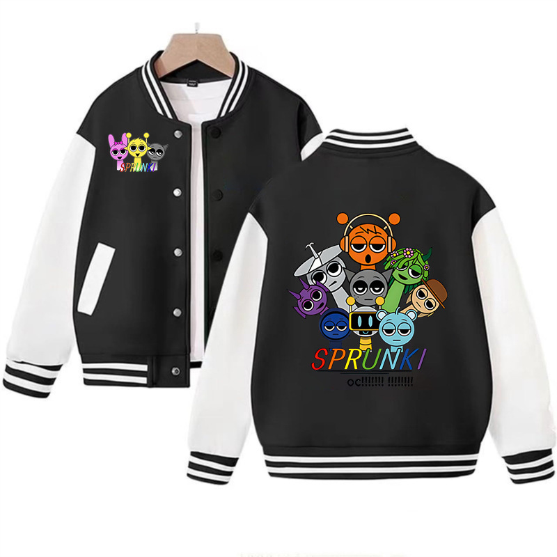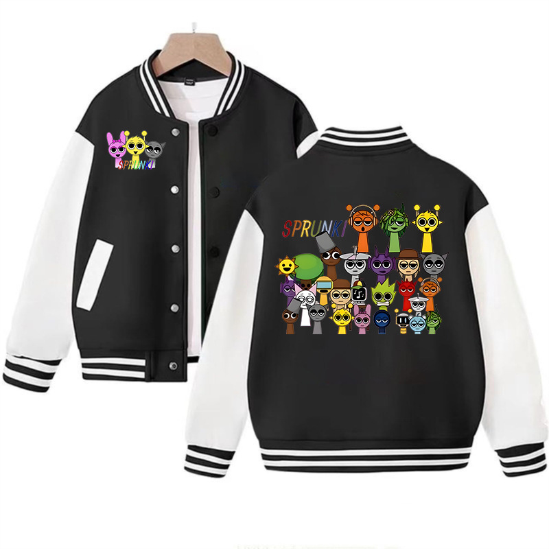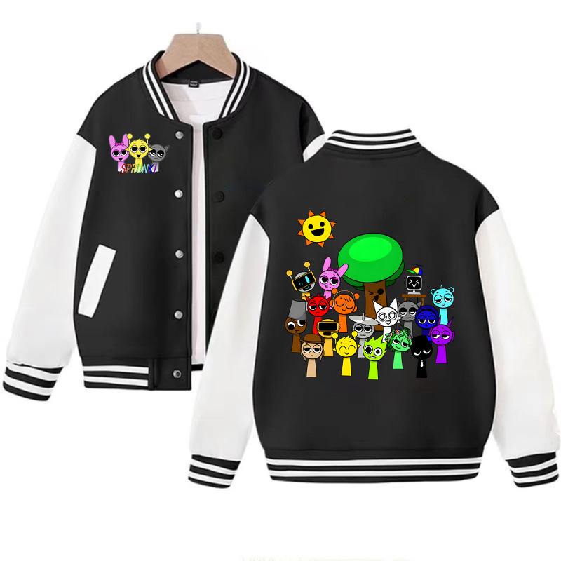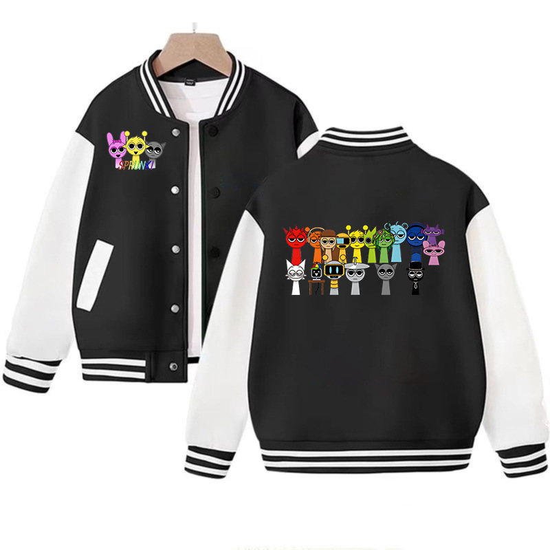 국경 간 인기 판매 리듬 박스 sprunki 만화 프린트 패션 남성 및 여성 카디건 재킷 아동 야구 유니폼스토어 가기