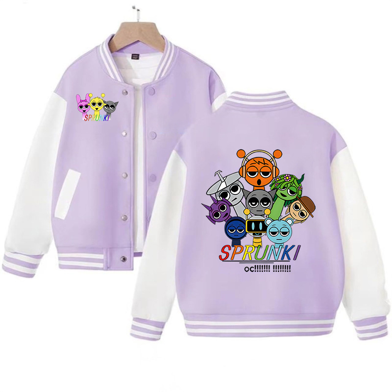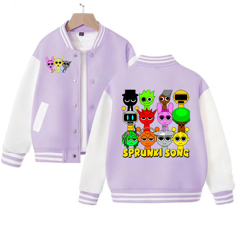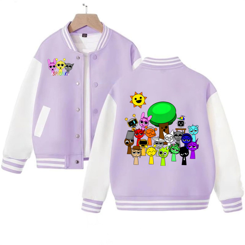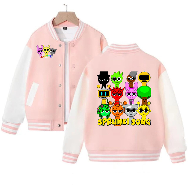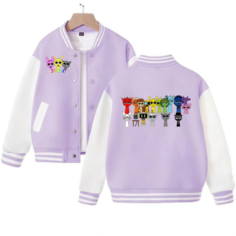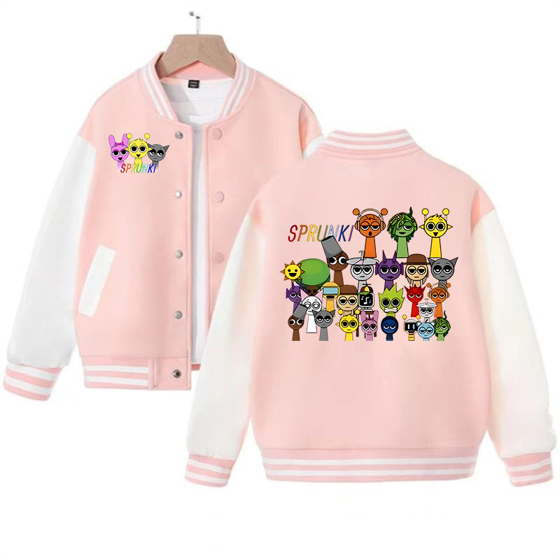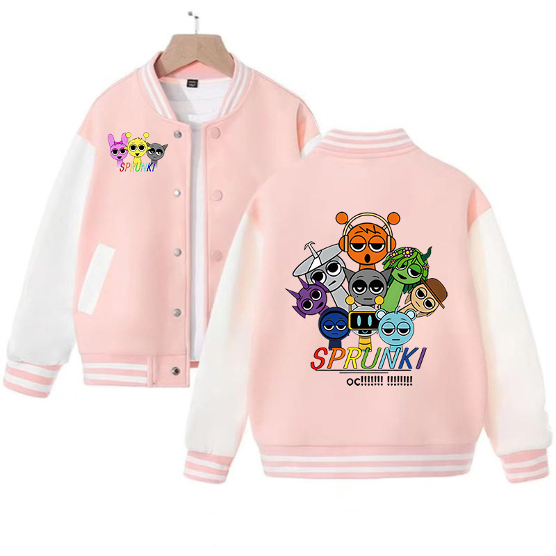 국경 간 인기 판매 리듬 박스 sprunki 만화 프린트 패션 남성 및 여성 카디건 재킷 아동 야구 유니폼스토어 가기