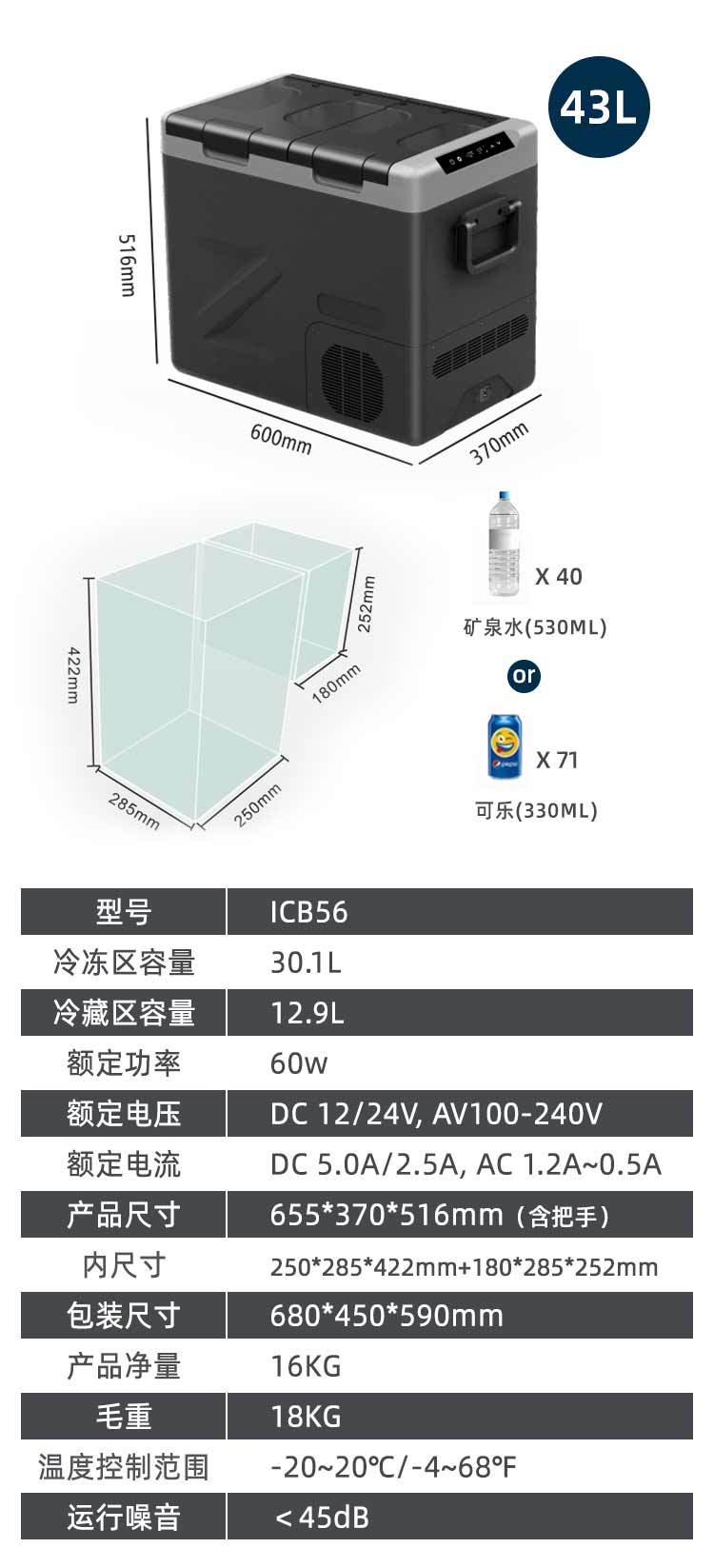 차량용 냉장고 대용량 이중문 분할형 차량 및 가정용 냉장 냉동 12V24V 자동차 트럭용 컴프레서 소형 냉장고