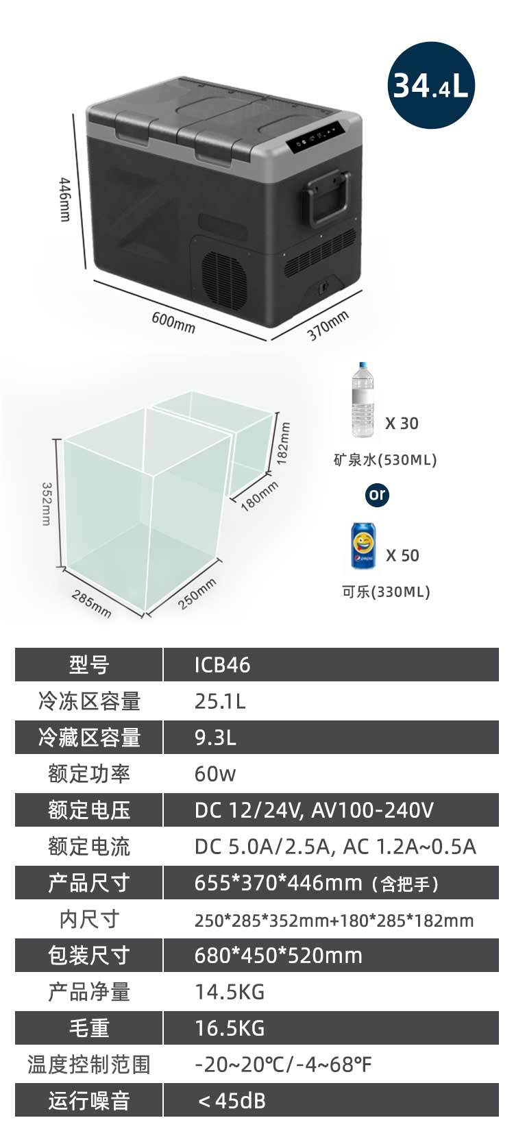차량용 냉장고 대용량 이중문 분할형 차량 및 가정용 냉장 냉동 12V24V 자동차 트럭용 컴프레서 소형 냉장고스토어 가기