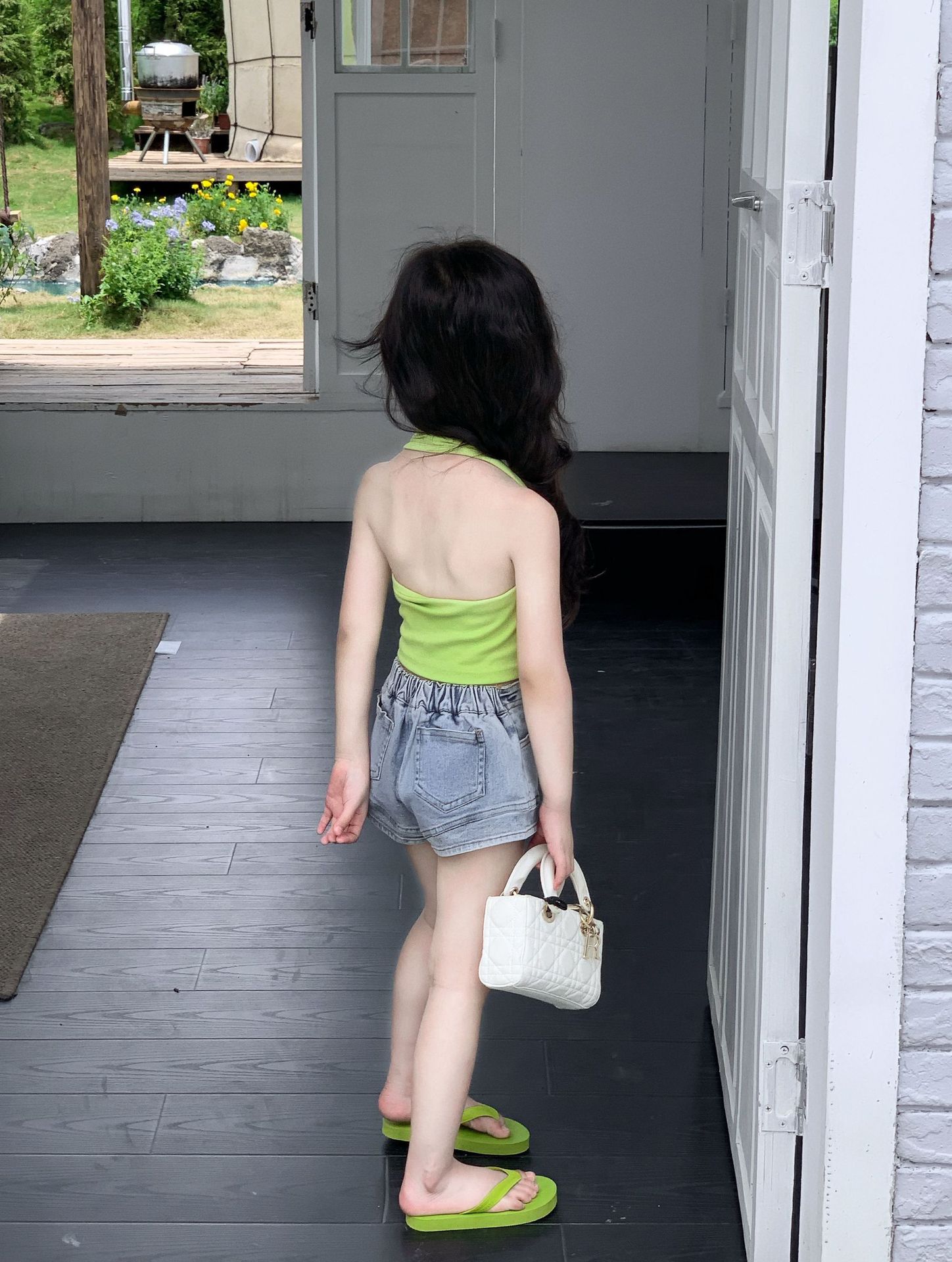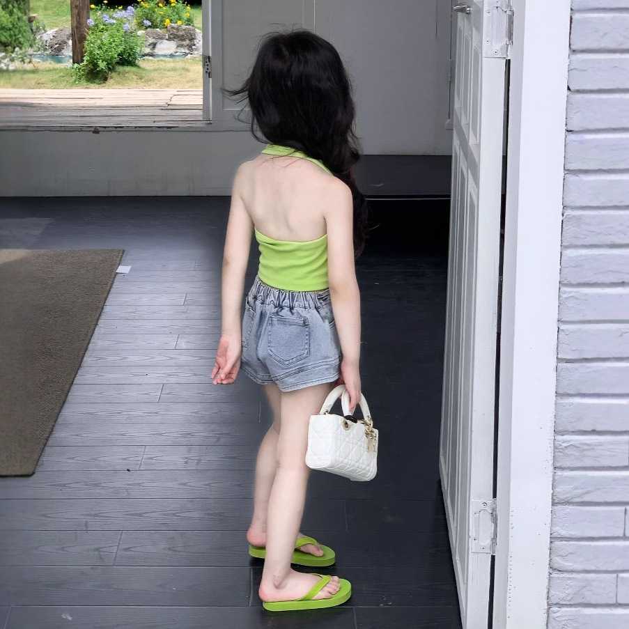 여자 조끼 2025 여름 새로운 한국 스타일 홀터넥 슬링 짧은 배꼽 노출 뜨거운 소녀 탑 화이트 백리스 조끼스토어 가기