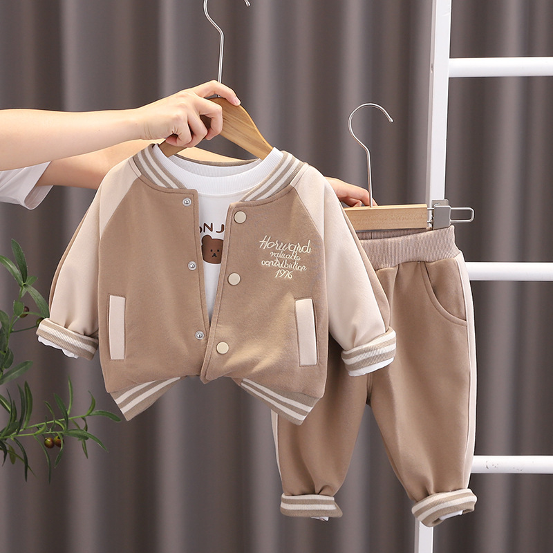 아동복 대외 무역 소년 가을 의류 정장 2025 서양식 아동 캐주얼 의류 서양식 야구 유니폼 3 피스 세트 유행