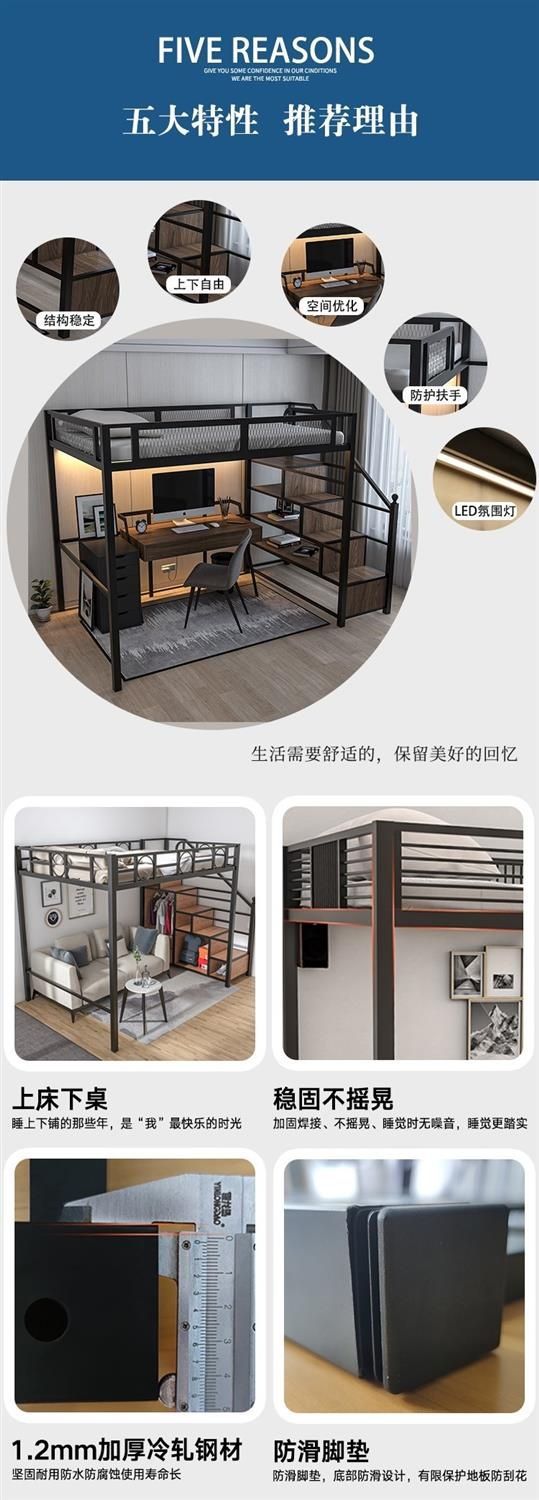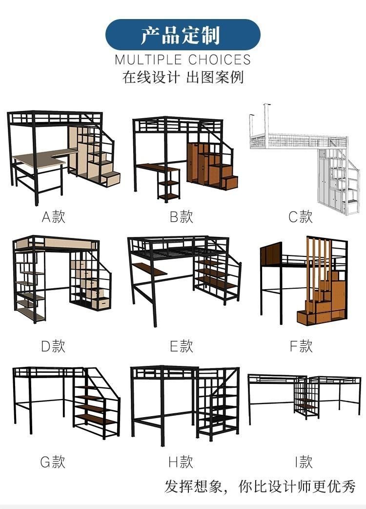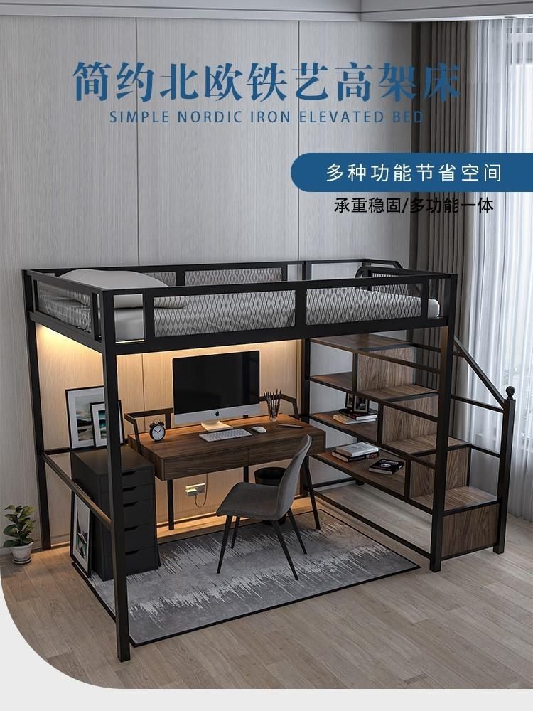 로프트 침대 북유럽 철제 이층 침대 | 다기능 철제 프레임 로프트 침대 | 2층 작은 아파트에 적합한 철제 프레임 침대