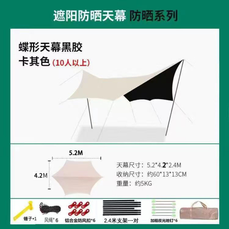 나비 캐노피 텐트 비닐 태양 보호 야외 피크닉 휴대용 두꺼운 방수 캠핑 단열 육각형 천막스토어 가기