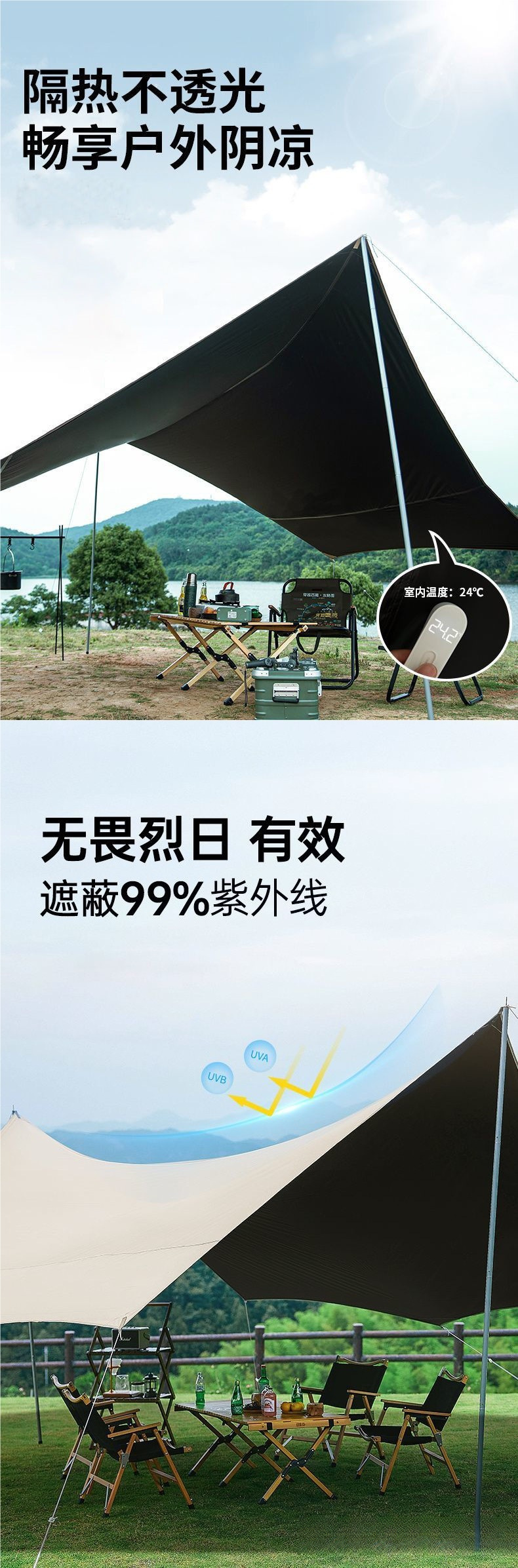 나비 캐노피 텐트 비닐 태양 보호 야외 피크닉 휴대용 두꺼운 방수 캠핑 단열 육각형 천막