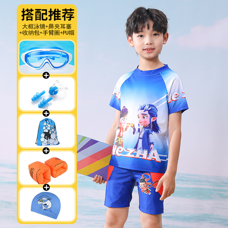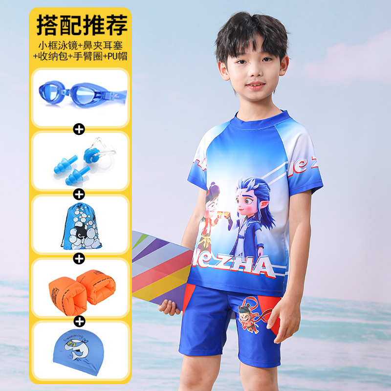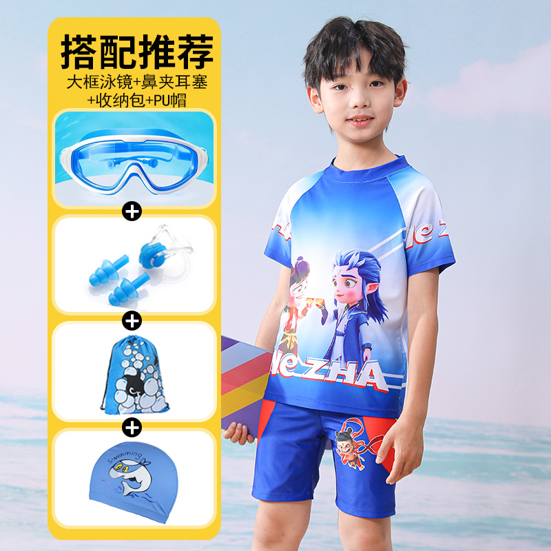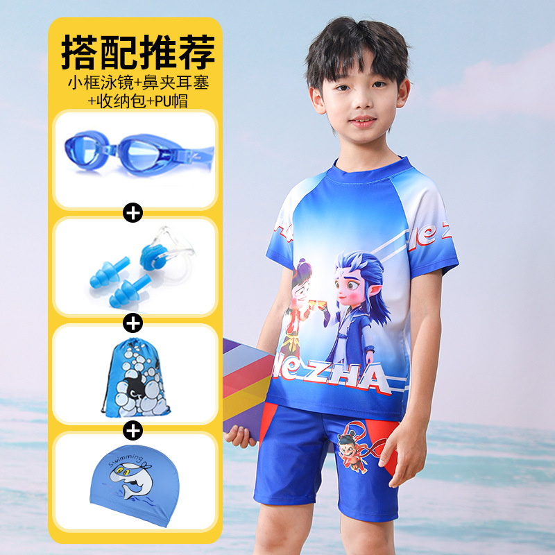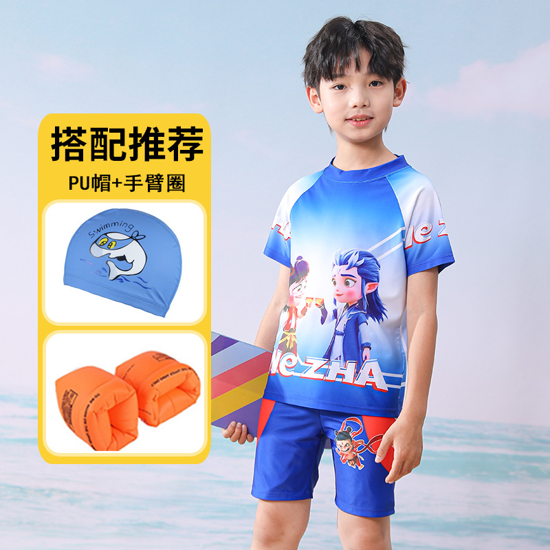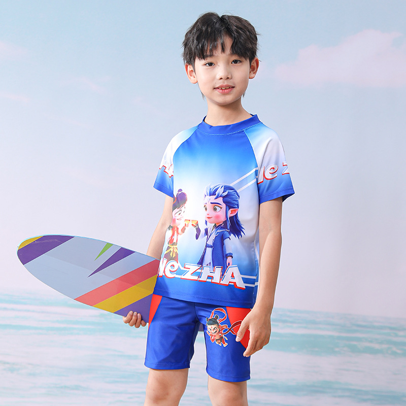 어린이 수영복 바지 소년 스플릿 Nezha 수영복 소년 어린이 만화 애니메이션 소형, 중형 및 대형 어린이 수영복