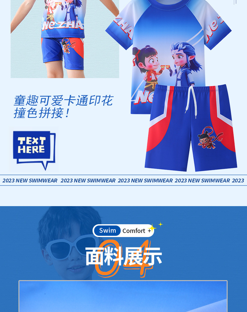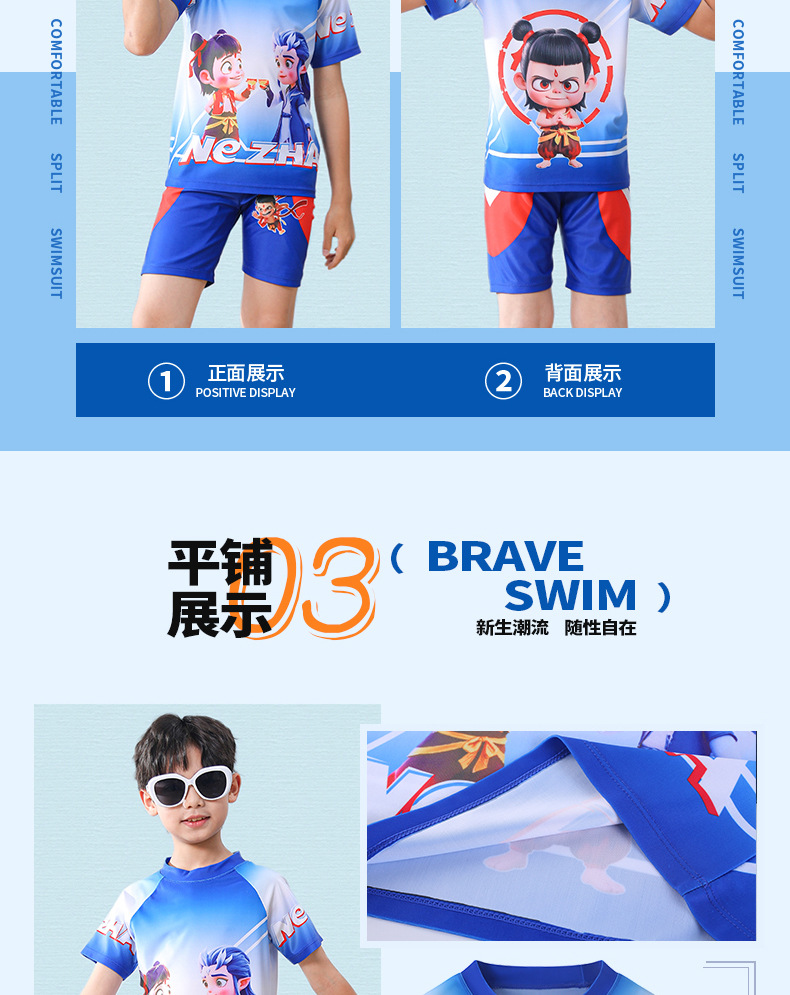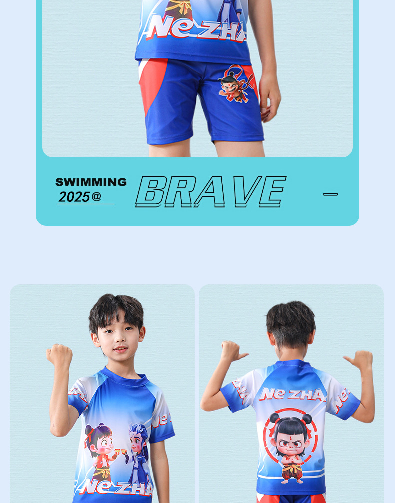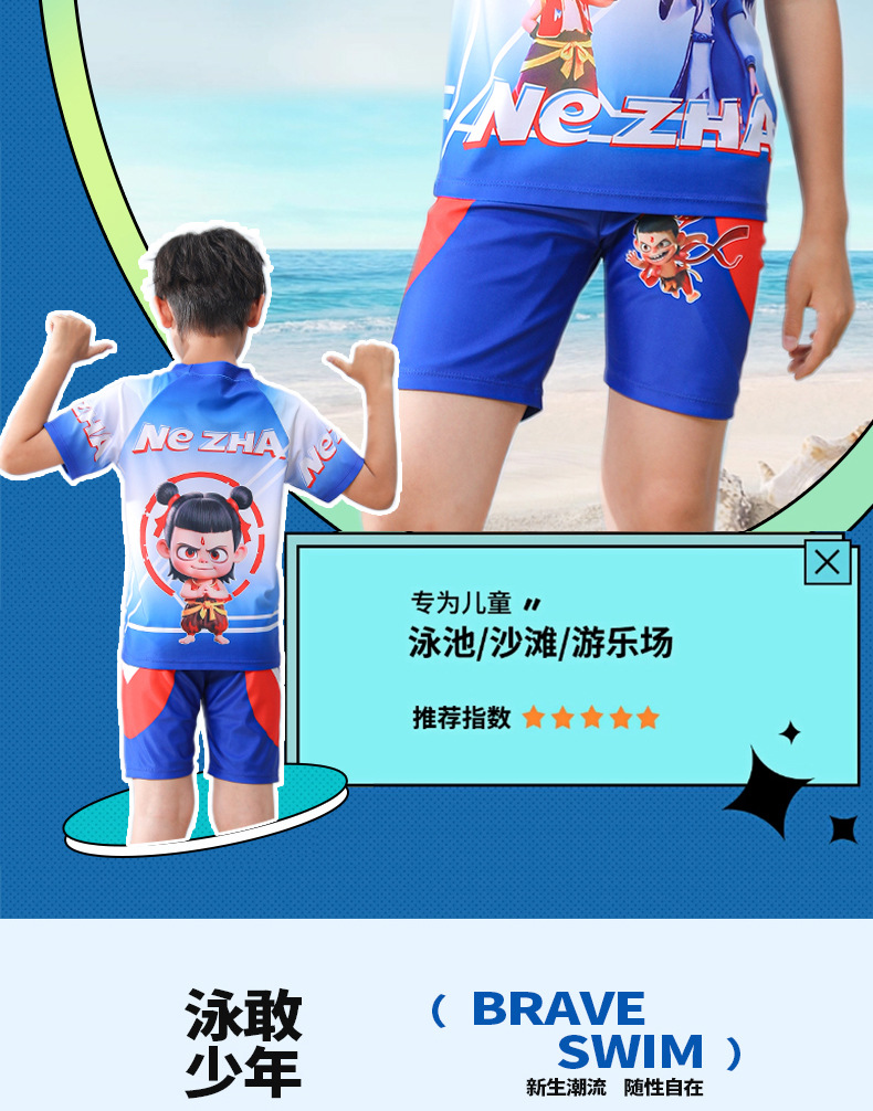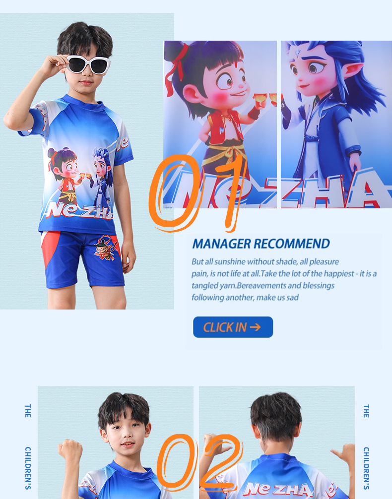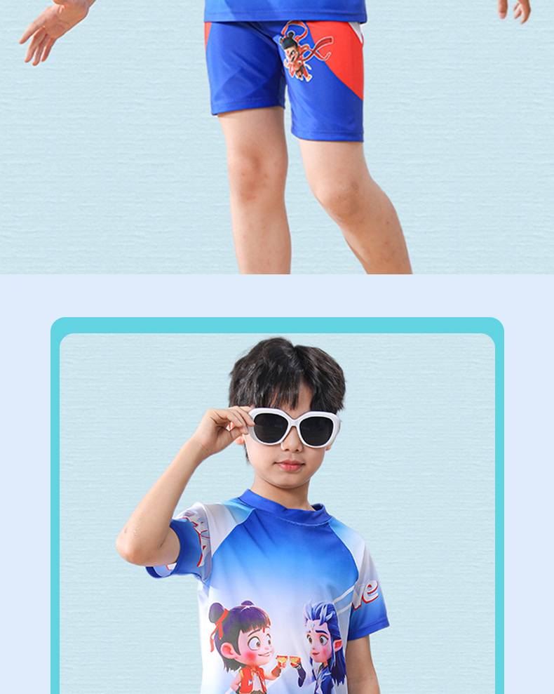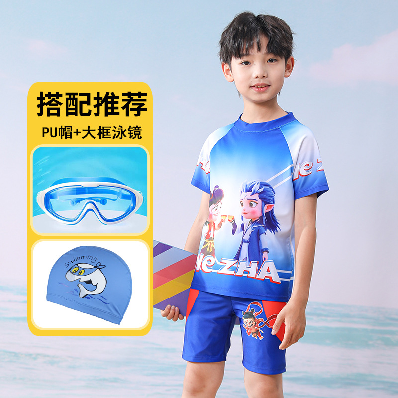 어린이 수영복 바지 소년 스플릿 Nezha 수영복 소년 어린이 만화 애니메이션 소형, 중형 및 대형 어린이 수영복스토어 가기