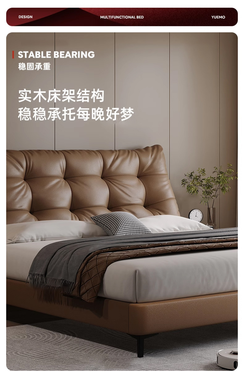 이탈리안 라이트 럭셔리 가죽 침대, 모던 마스터 침실, 심플한 하이엔드 침대, 마스터 침실 수납 소프트백 더블 리틀 블랙 베어 침대, 웨딩 침대