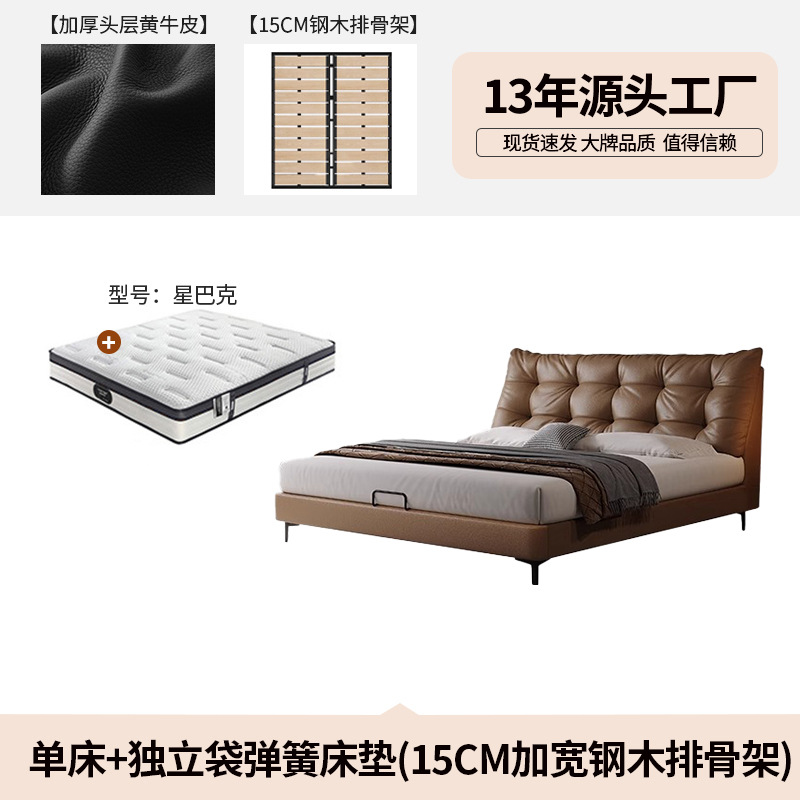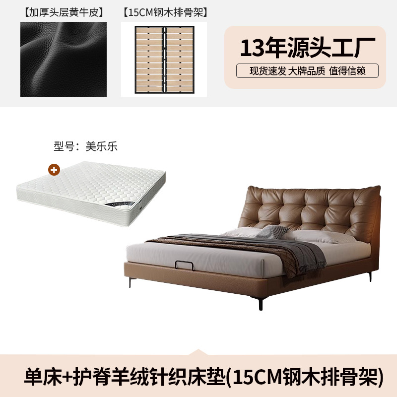 • 싱글 침대 [노란색 소가죽의 첫 번째 레이어, 가짜 제품을 얻으면 10 + 15cm + 느슨한 나무 프레임을 얻게 됩니다]