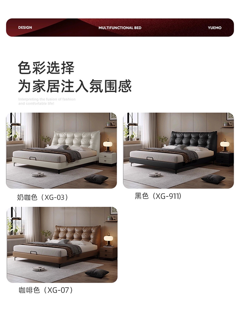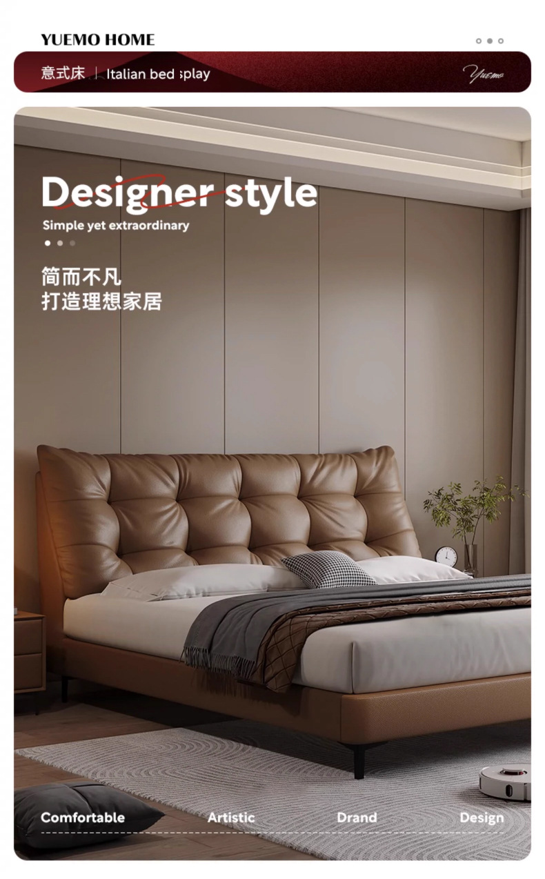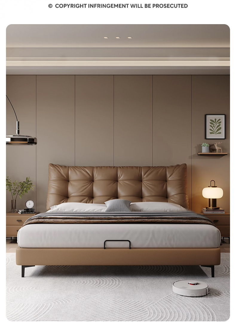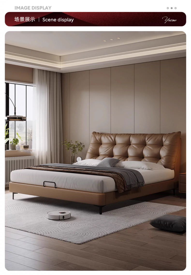 이탈리안 라이트 럭셔리 가죽 침대, 모던 마스터 침실, 심플한 하이엔드 침대, 마스터 침실 수납 소프트백 더블 리틀 블랙 베어 침대, 웨딩 침대스토어 가기
