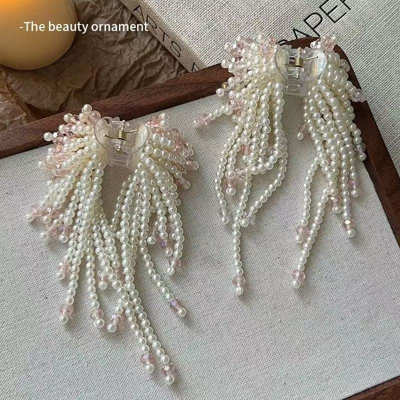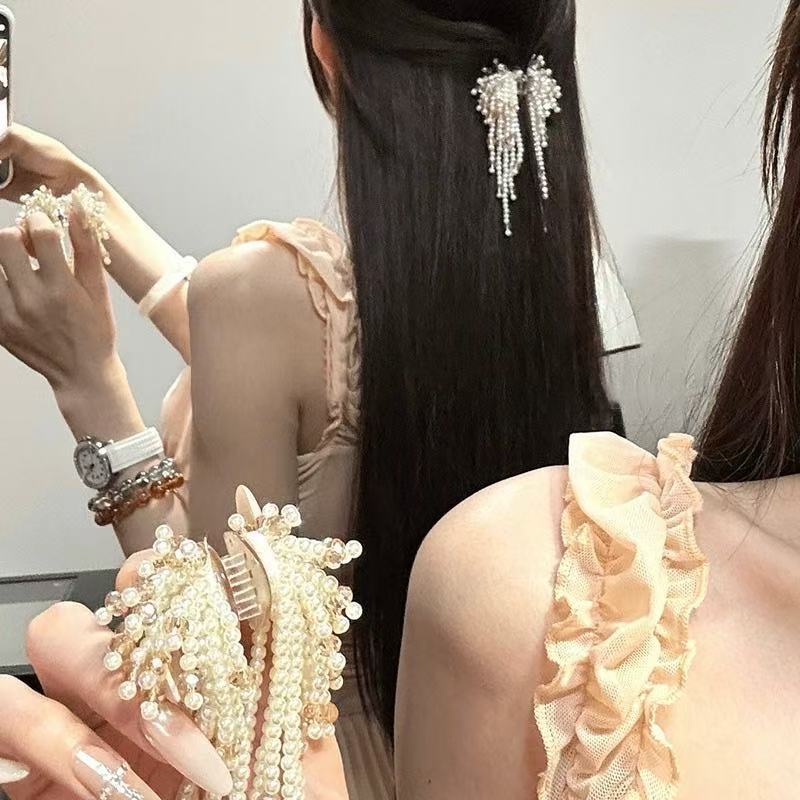 한국식 태슬 여성용 소형 머리핀 2024 신형 엘프 귀 슈퍼 펄 머리핀 반묶음 머리 상어핀 머리핀