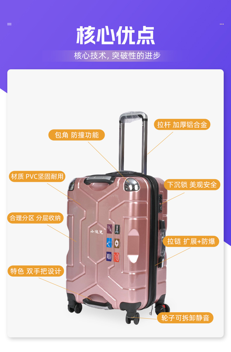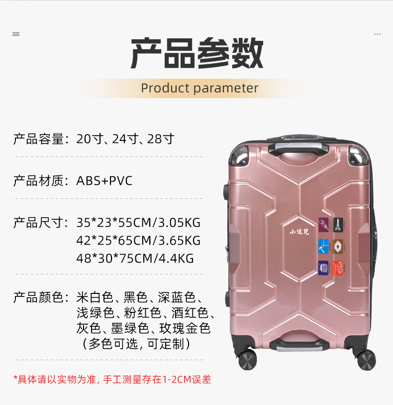 맞춤형 더블 핸들 여행가방, 견고하고 내구성이 뛰어난 코너 방폭형 여행가방, 여행가방, 탑승가방, 비밀번호 트롤리 케이스
