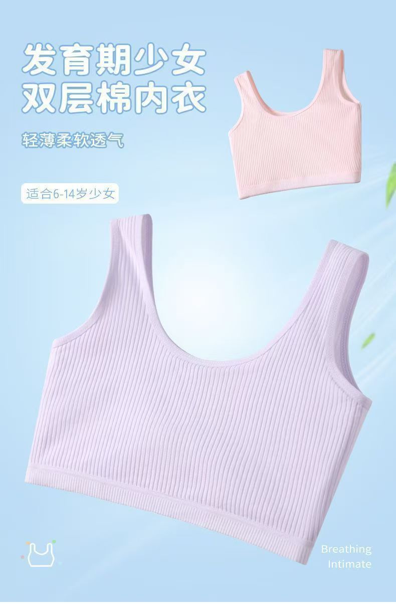 순면 여아 속옷, 발달기 조끼, 어린 여아, 중학생, 어린이 더블 레이어 어린이 튜브 탑 브라스토어 가기