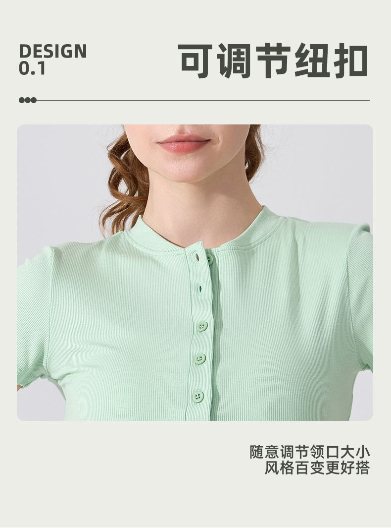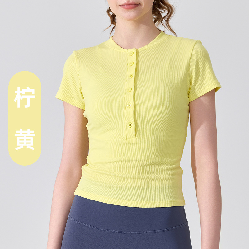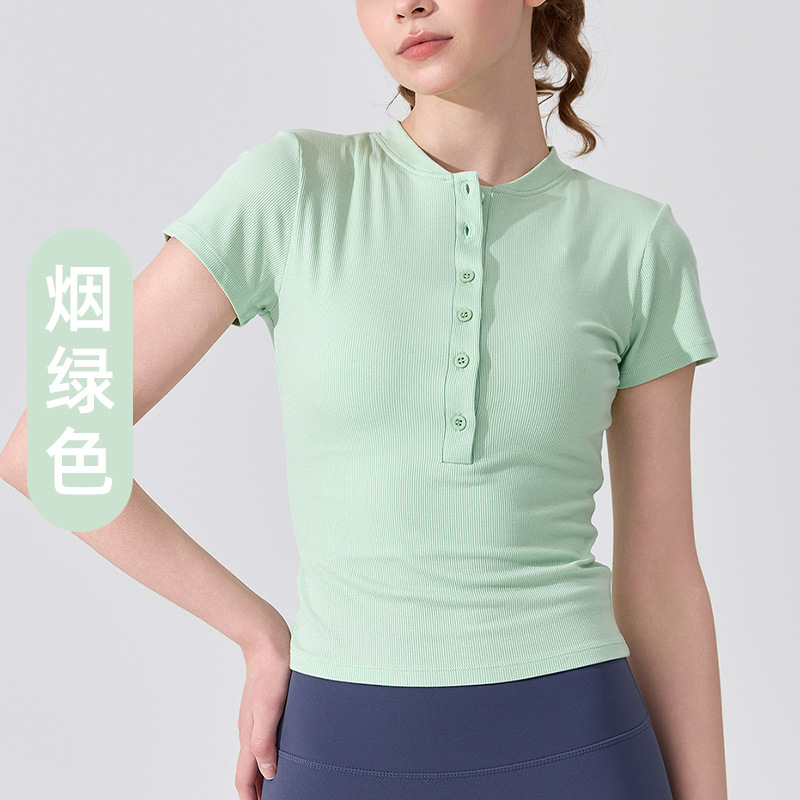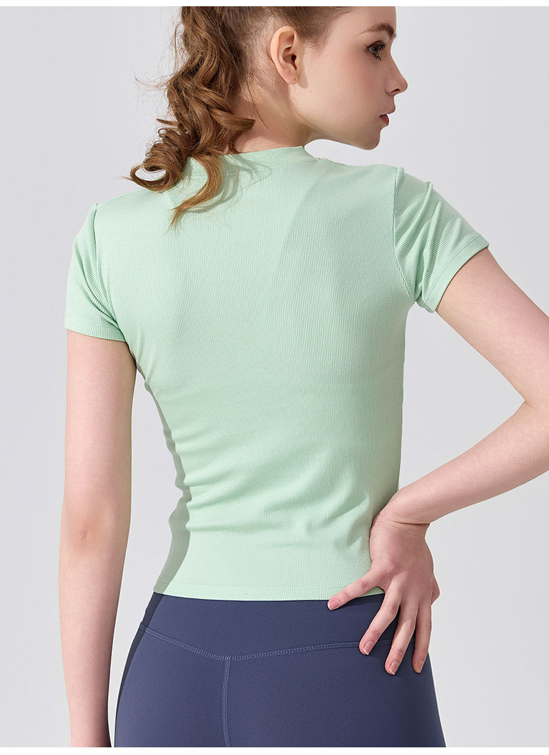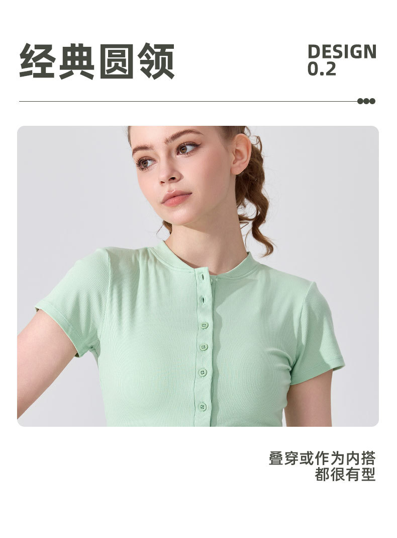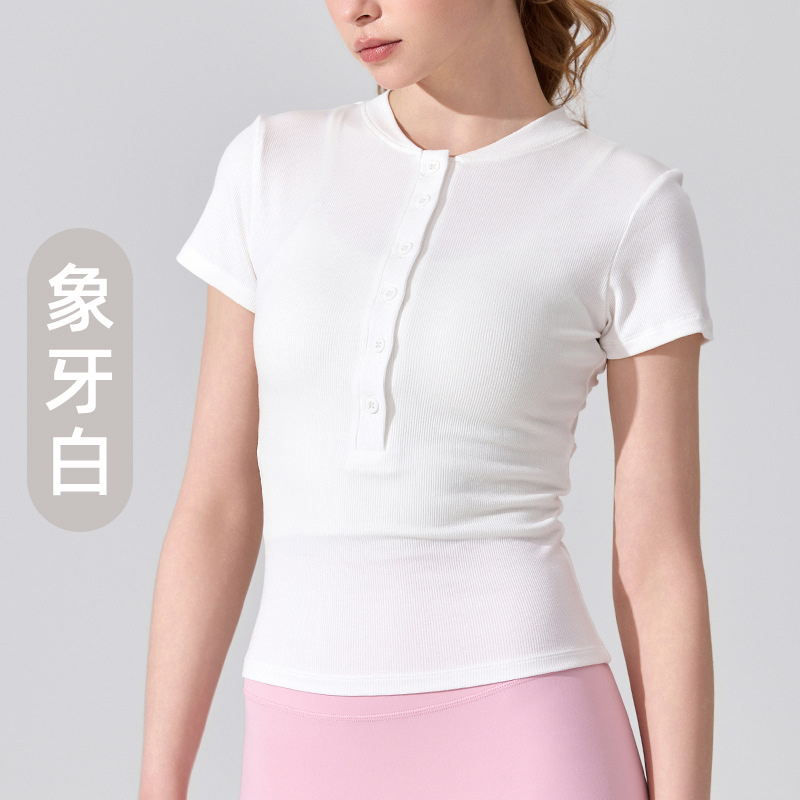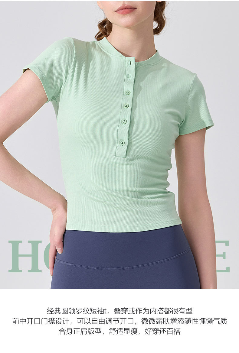 여름용 모달 하프 오픈 칼라 반팔 여성용 얇고 부드럽고 통기성이 뛰어나며 활용도가 높은 슬림핏 요가복 피트니스 탑스토어 가기