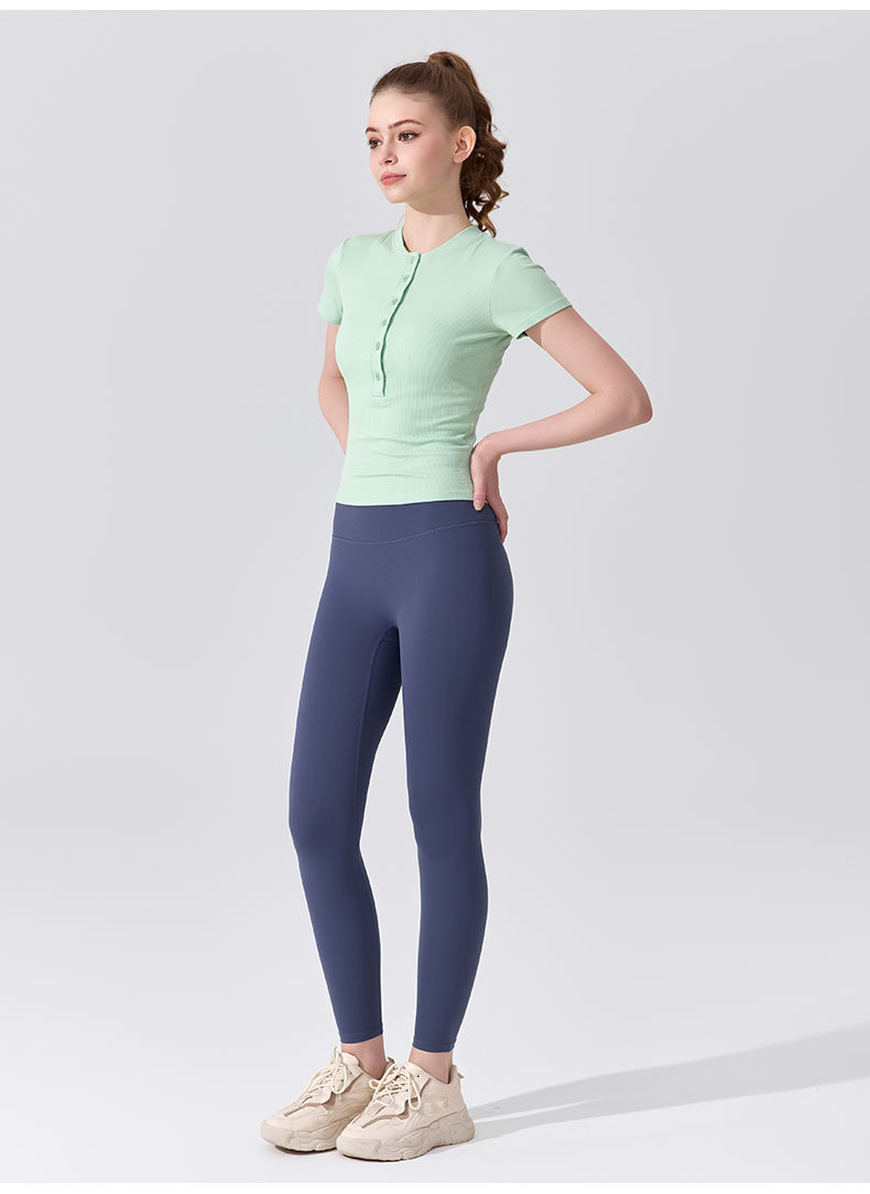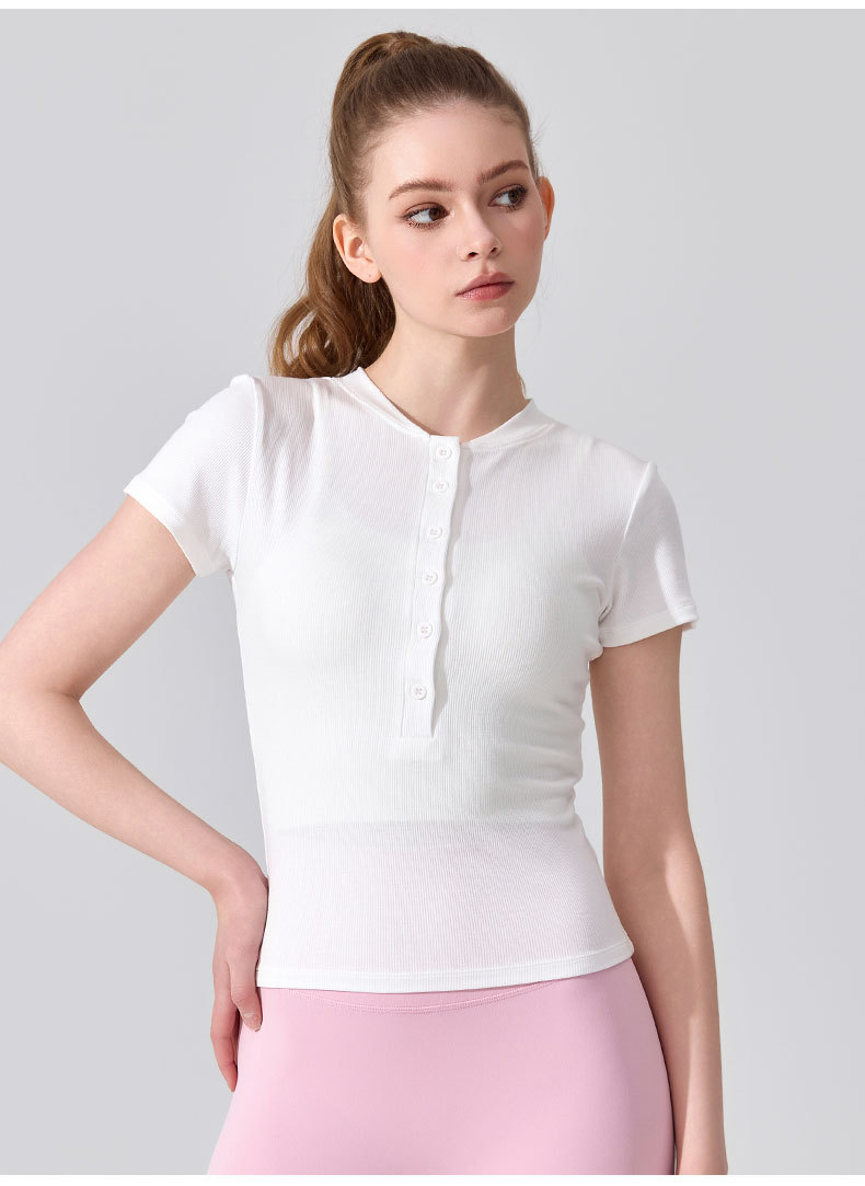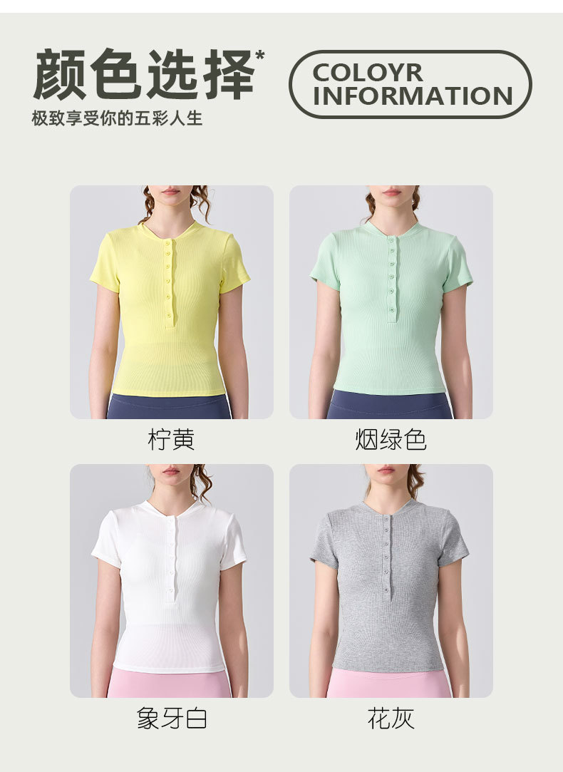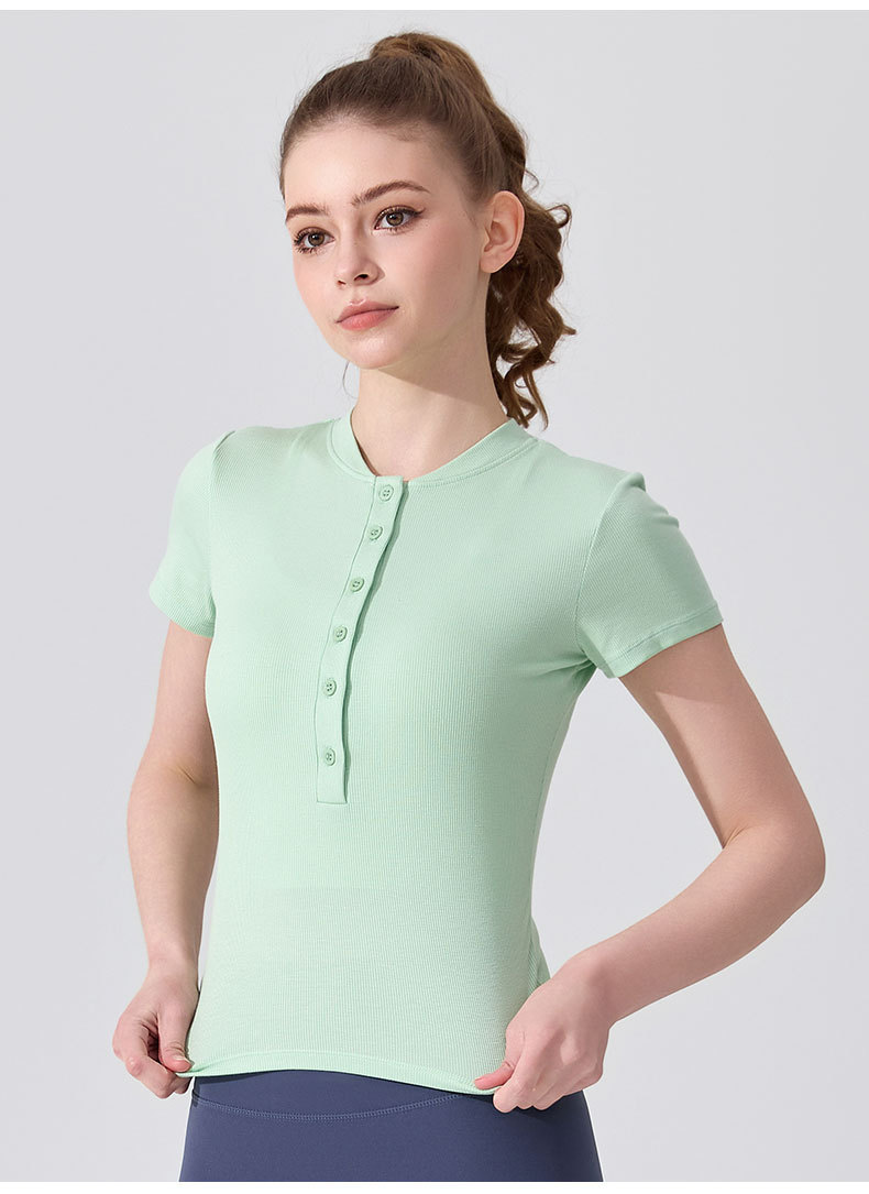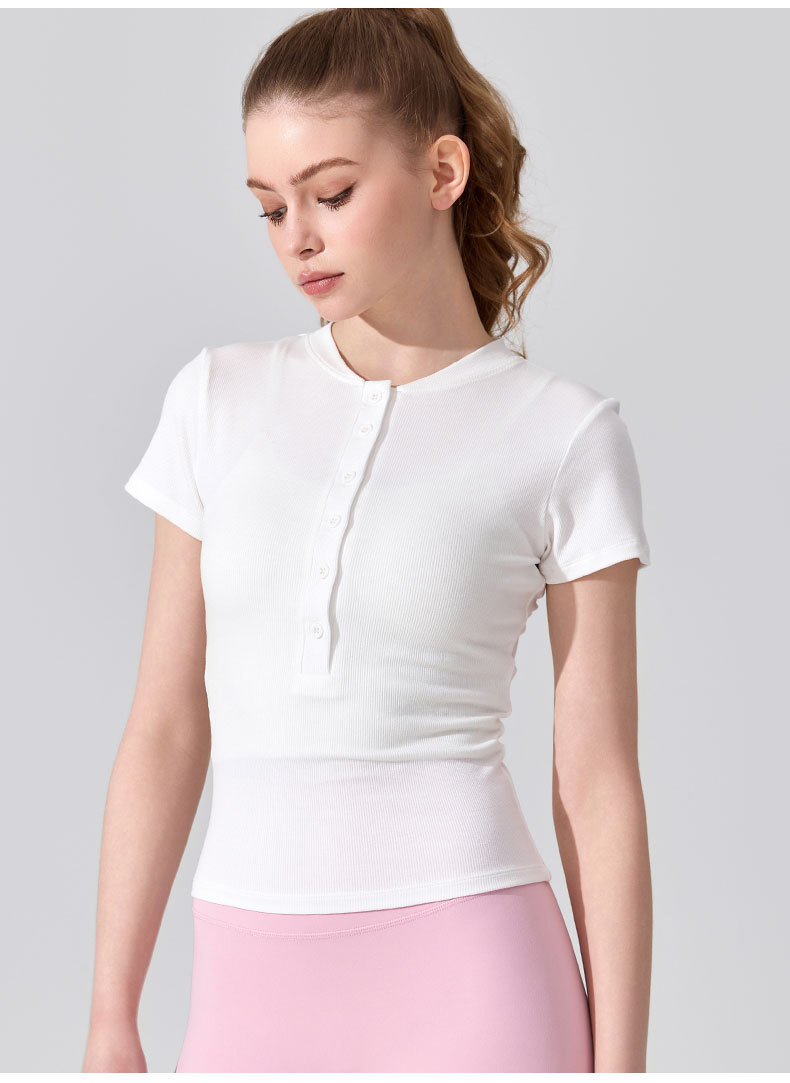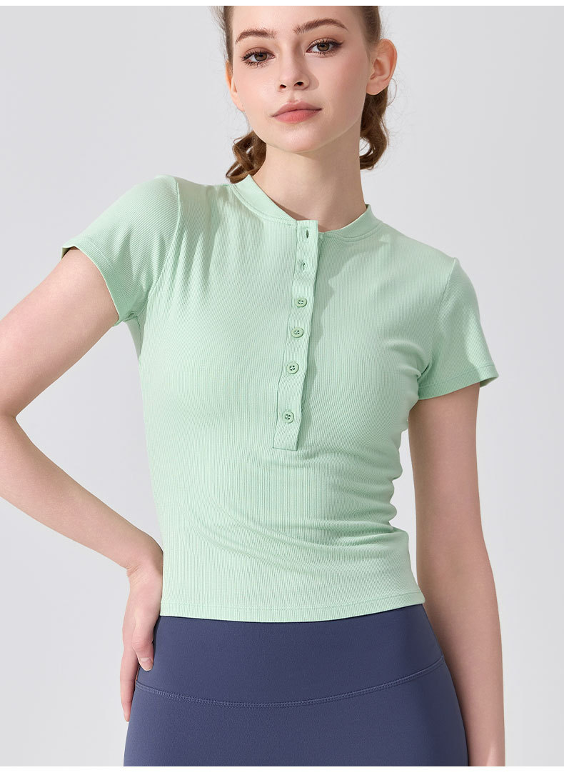 여름용 모달 하프 오픈 칼라 반팔 여성용 얇고 부드럽고 통기성이 뛰어나며 활용도가 높은 슬림핏 요가복 피트니스 탑스토어 가기