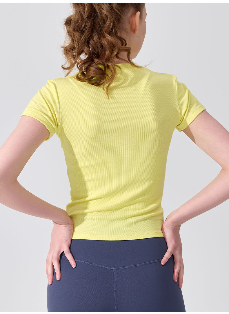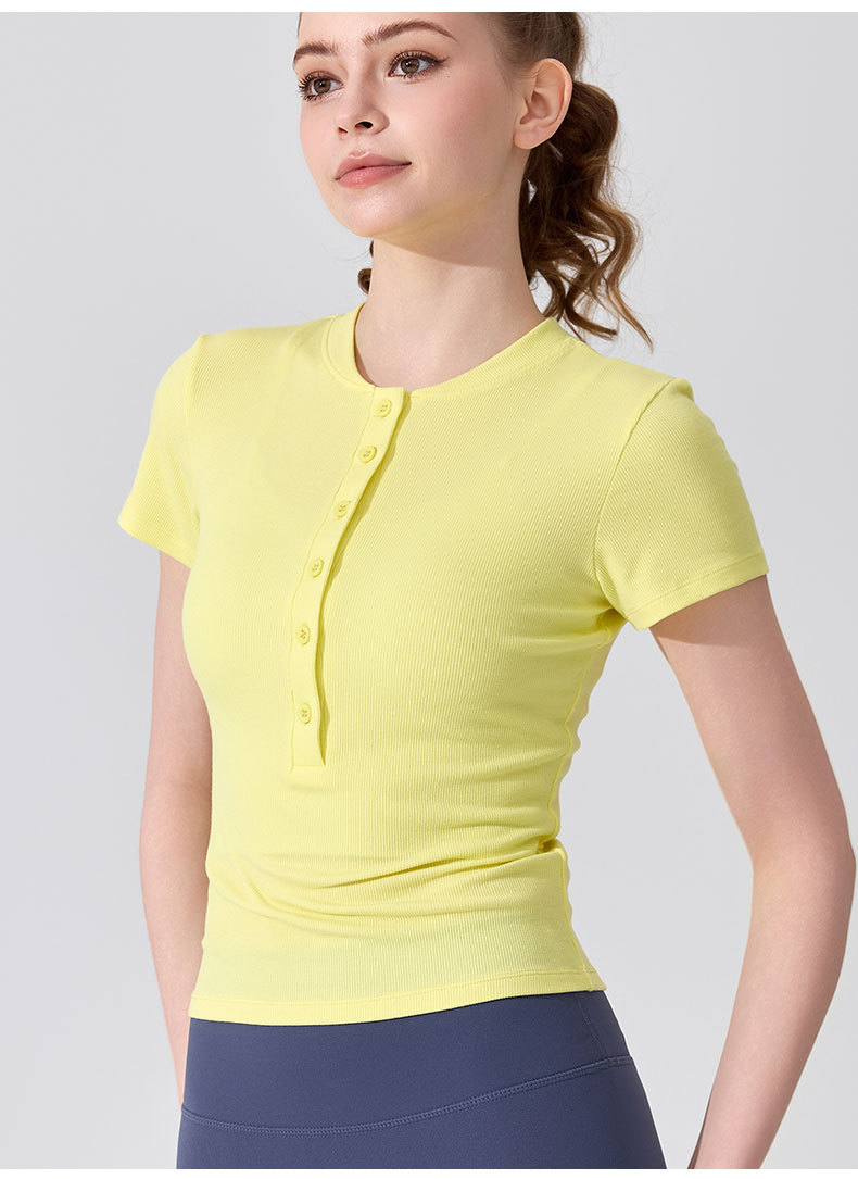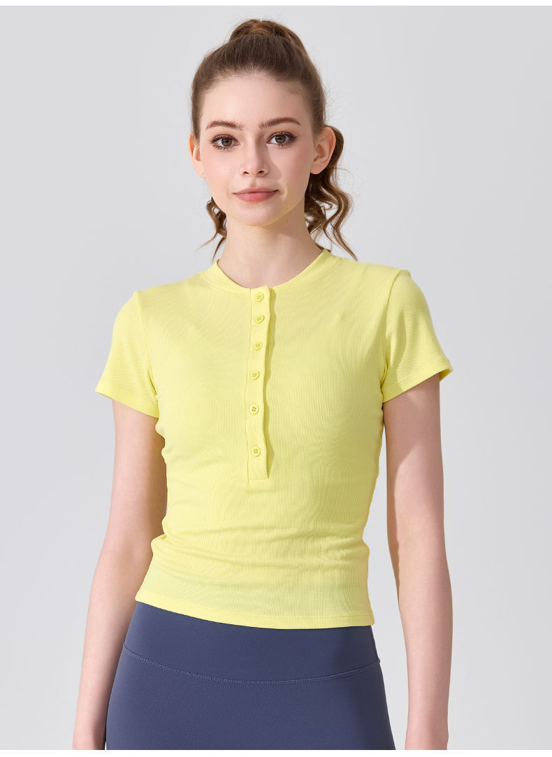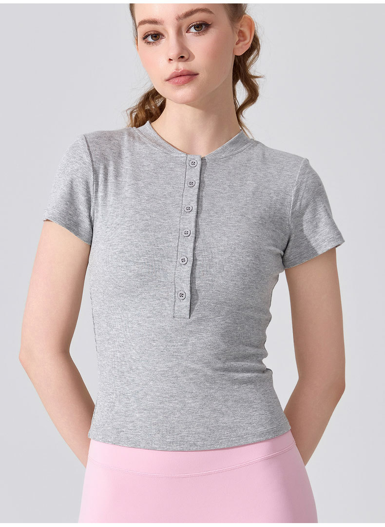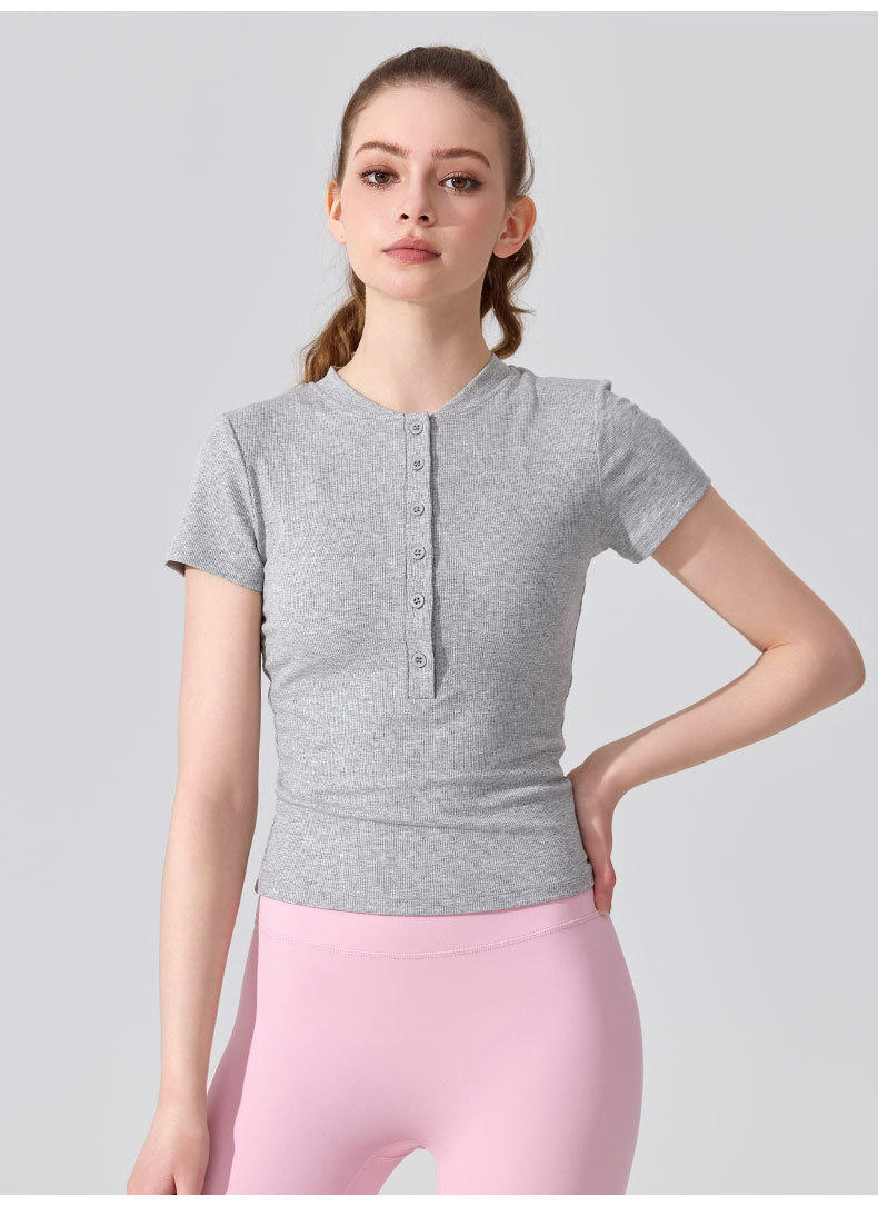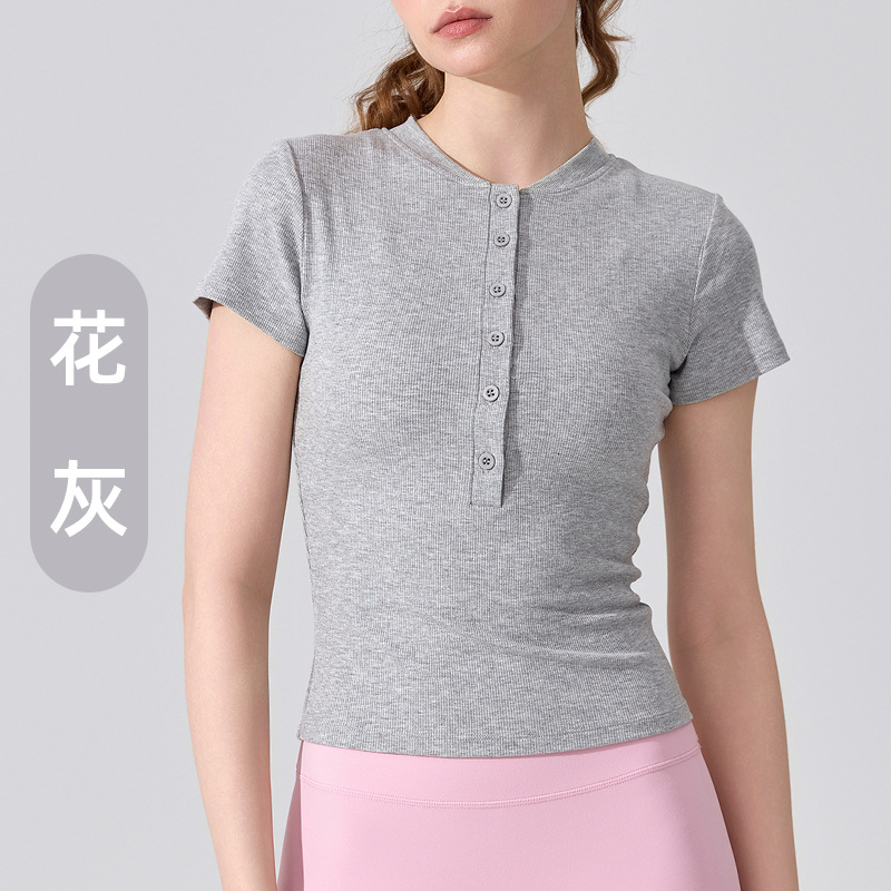 여름용 모달 하프 오픈 칼라 반팔 여성용 얇고 부드럽고 통기성이 뛰어나며 활용도가 높은 슬림핏 요가복 피트니스 탑
