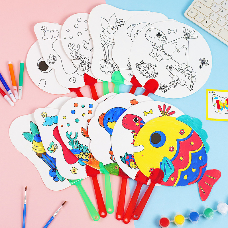 • 연꽃색 낙서 부채 10개(색펜 4개 포함)