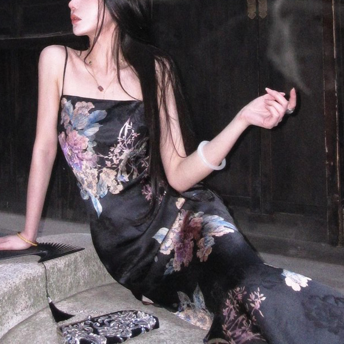 재고 있음【墨韵丹华】중국풍 신중국풍 여름 레이온 모란 자카드 4종 세트 여성용