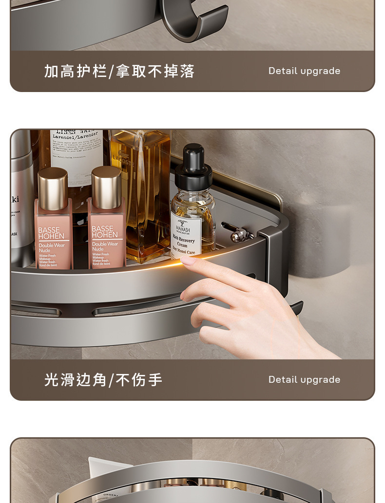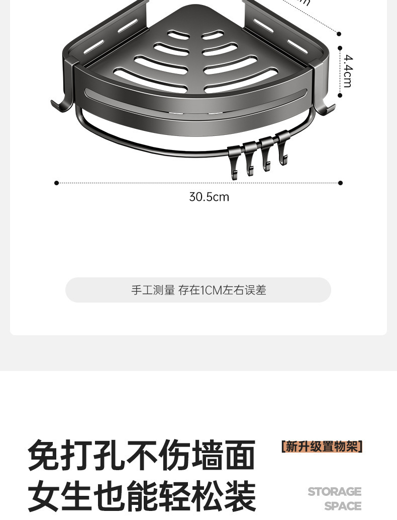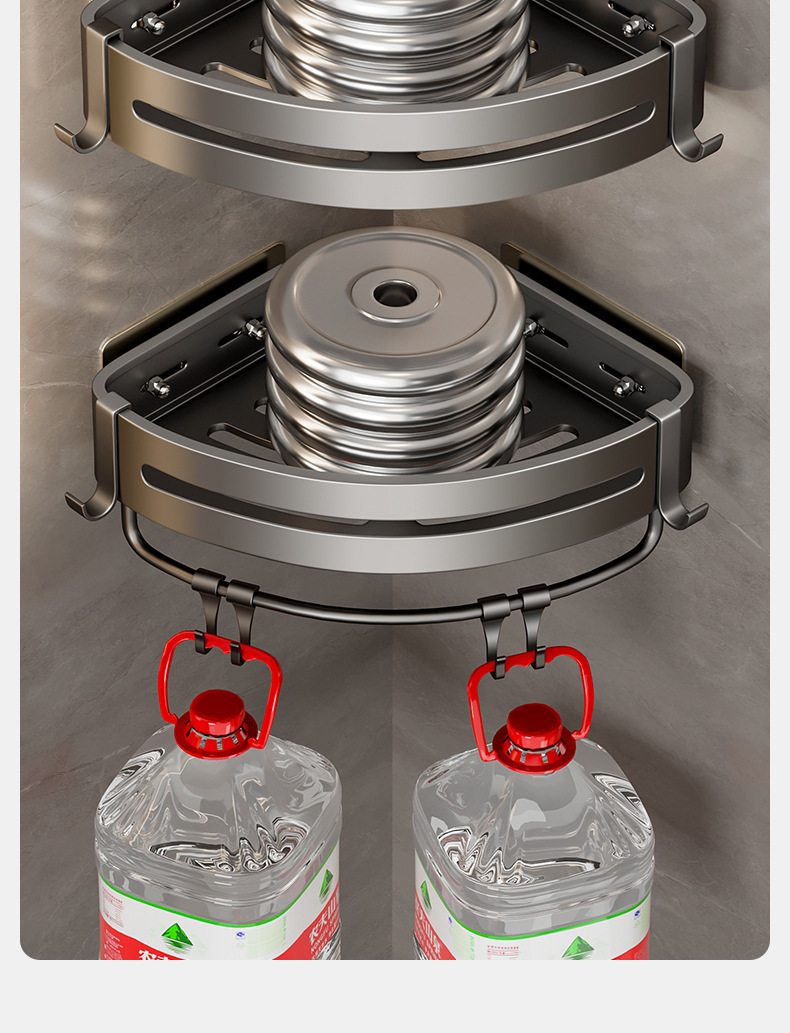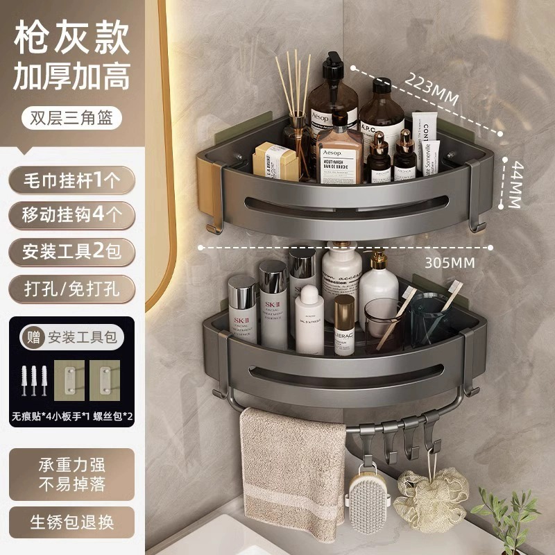 • 4.5 하이건 그레이 더블 레이어 삼각형 바구니(막대 포함) [즉시 사용 가능한 대용량](흔적 없는 스티커)