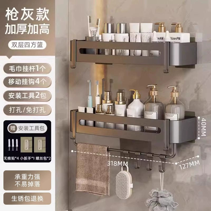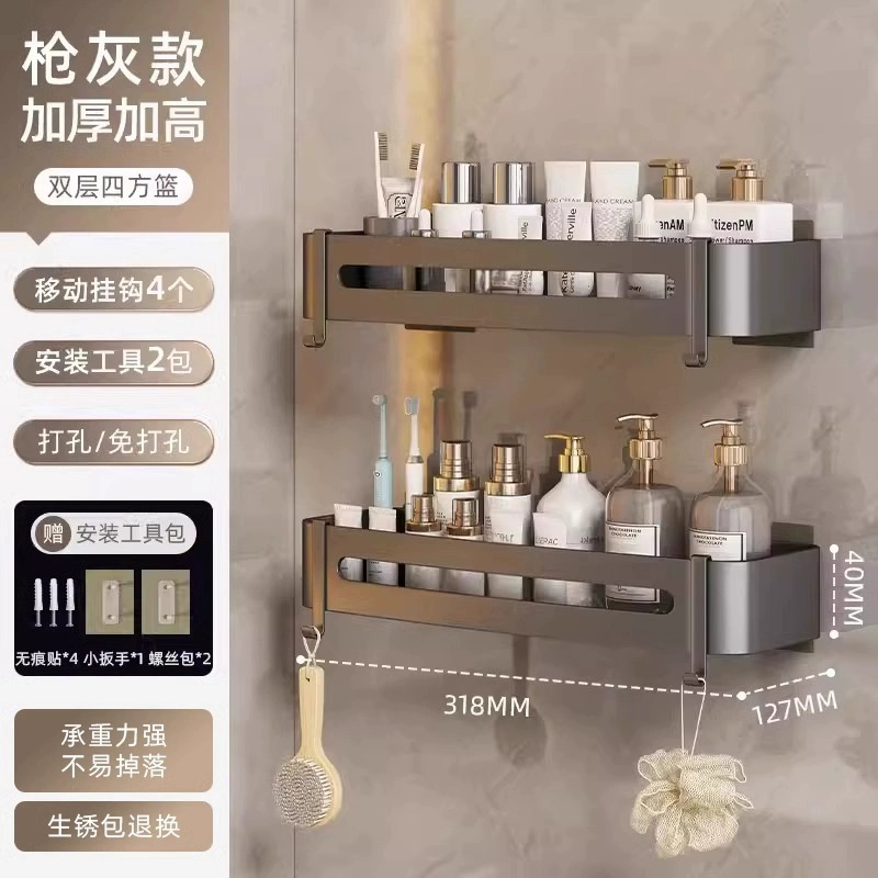 • 4.5톨 건그레이 2단 4코너 바구니 + 막대 [즉시 사용 가능한 대용량] (원활한 스티커)