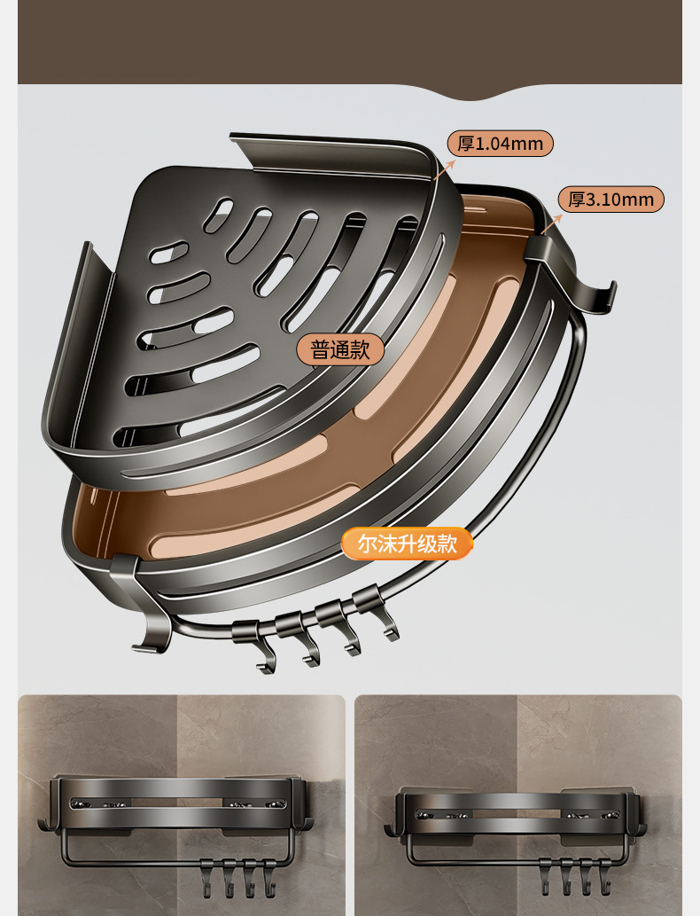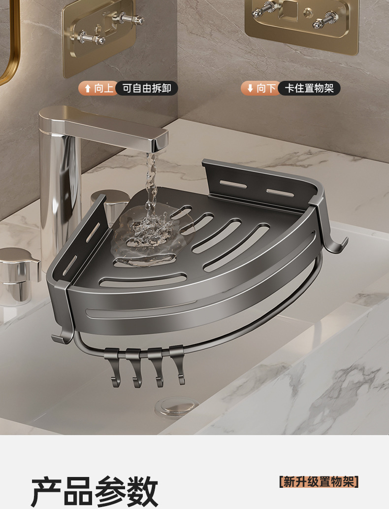 펀치없는 4.5MM 욕실 랙 욕실 벽걸이 형 삼각형 랙 가정용 세면대 벽 코너
