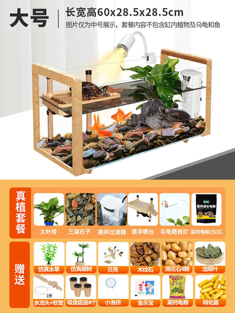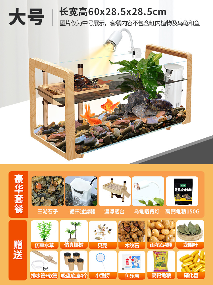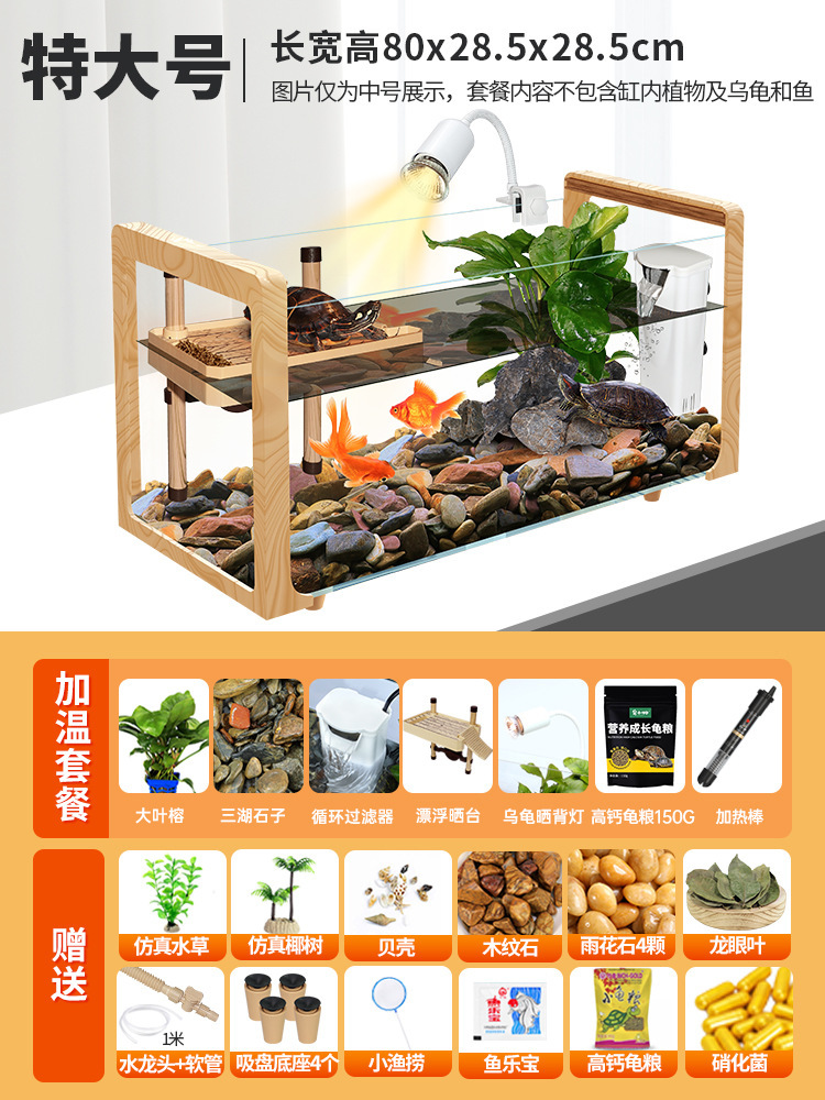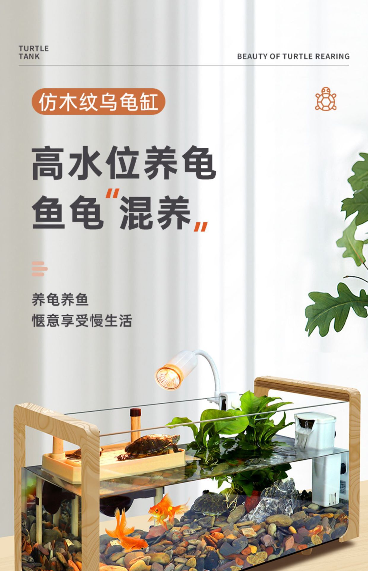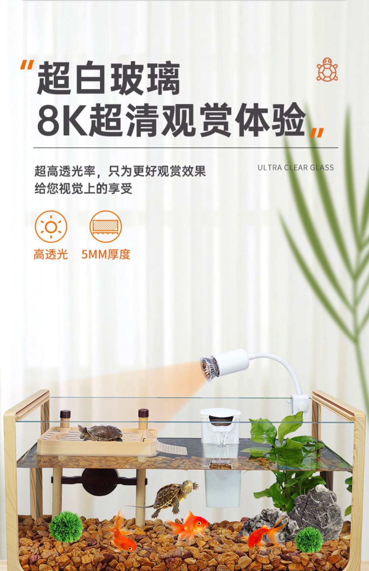 나뭇결 거북이 수조, 초백색 유리 빌라, 생태 일체형 사육 수조, 대형 및 소형 조경 물고기 및 거북이 혼합 사육 수조, 중국스토어 가기