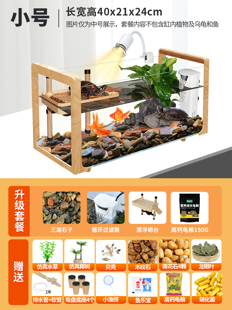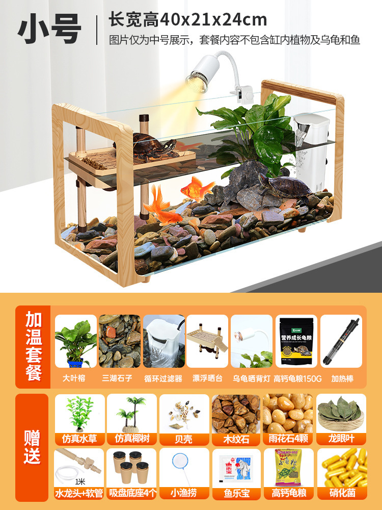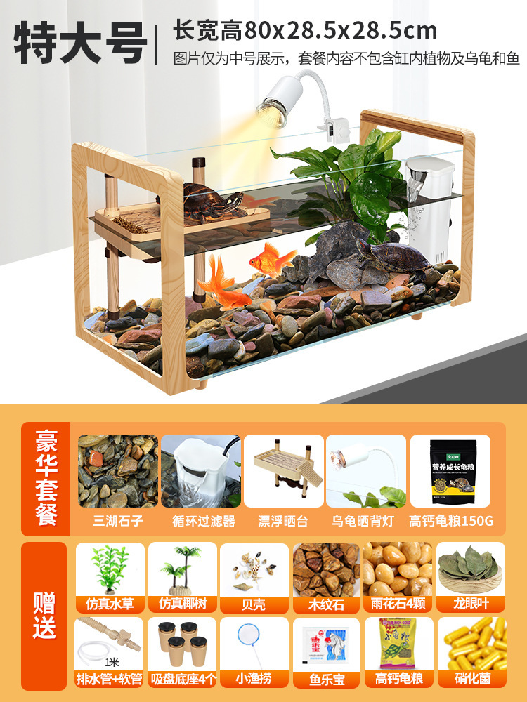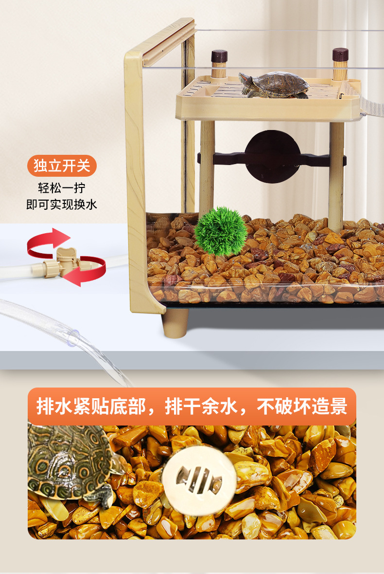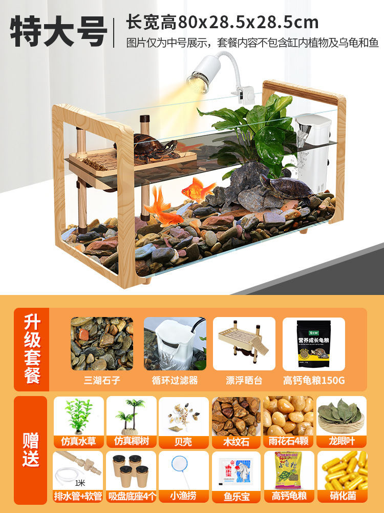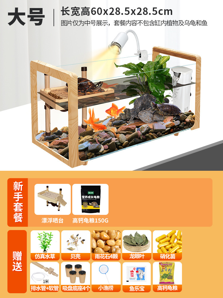 나뭇결 거북이 수조, 초백색 유리 빌라, 생태 일체형 사육 수조, 대형 및 소형 조경 물고기 및 거북이 혼합 사육 수조, 중국스토어 가기