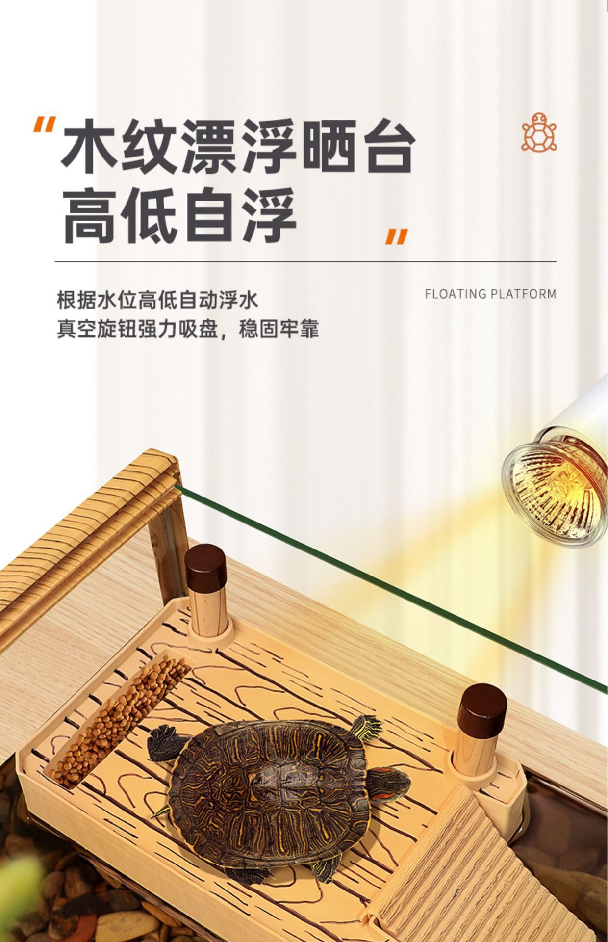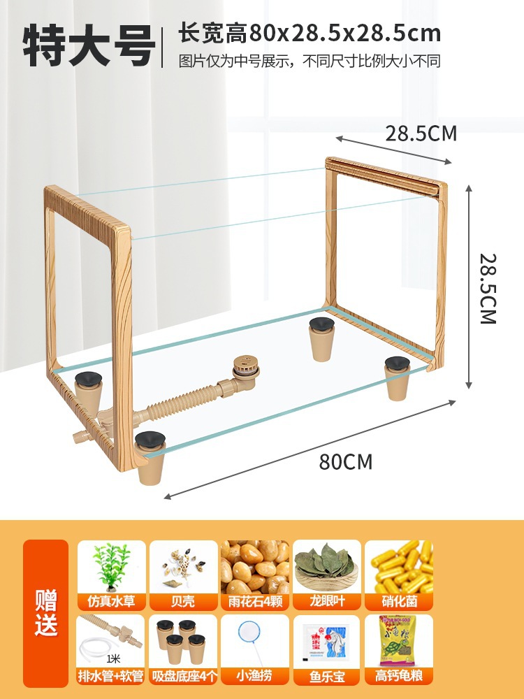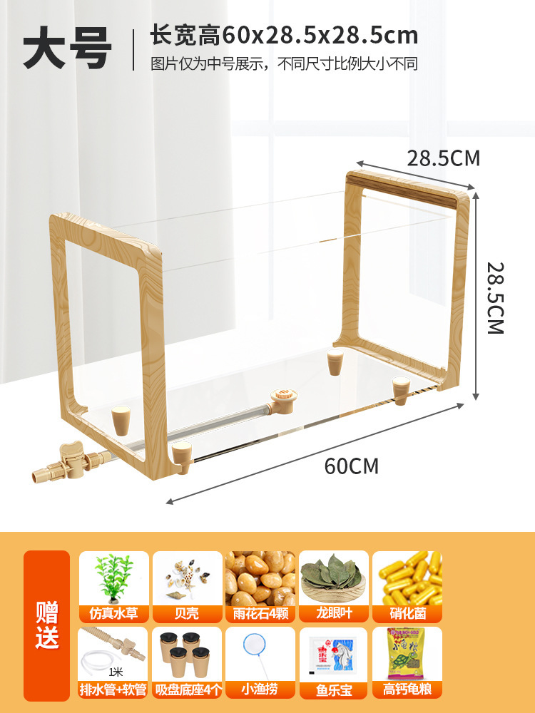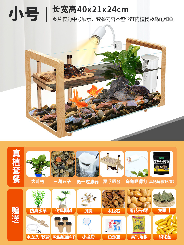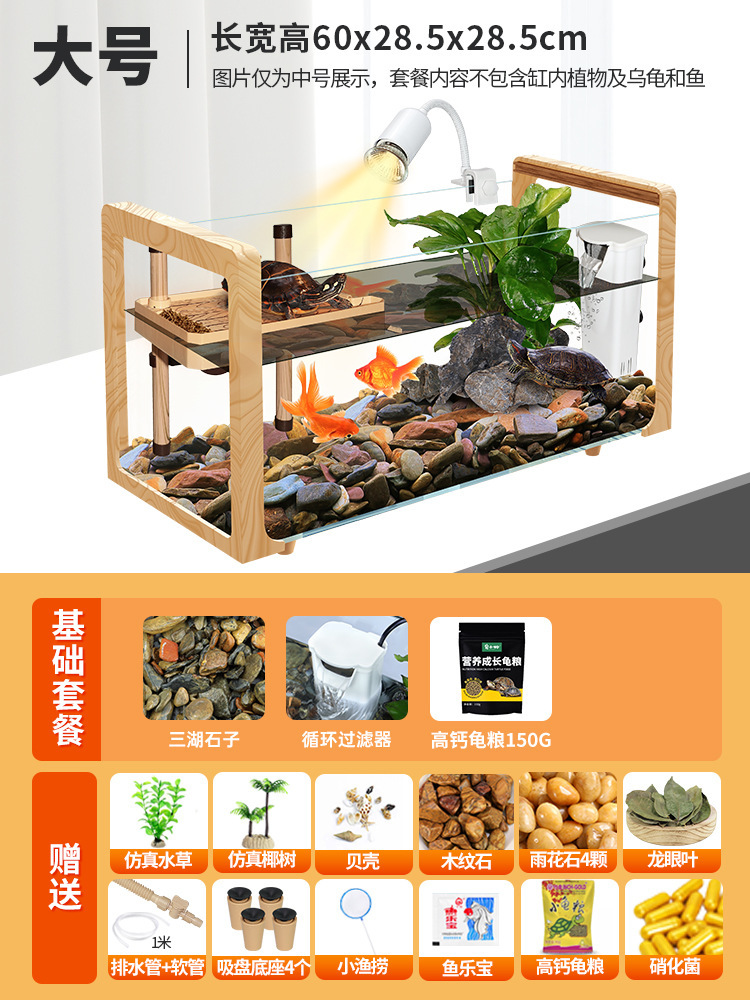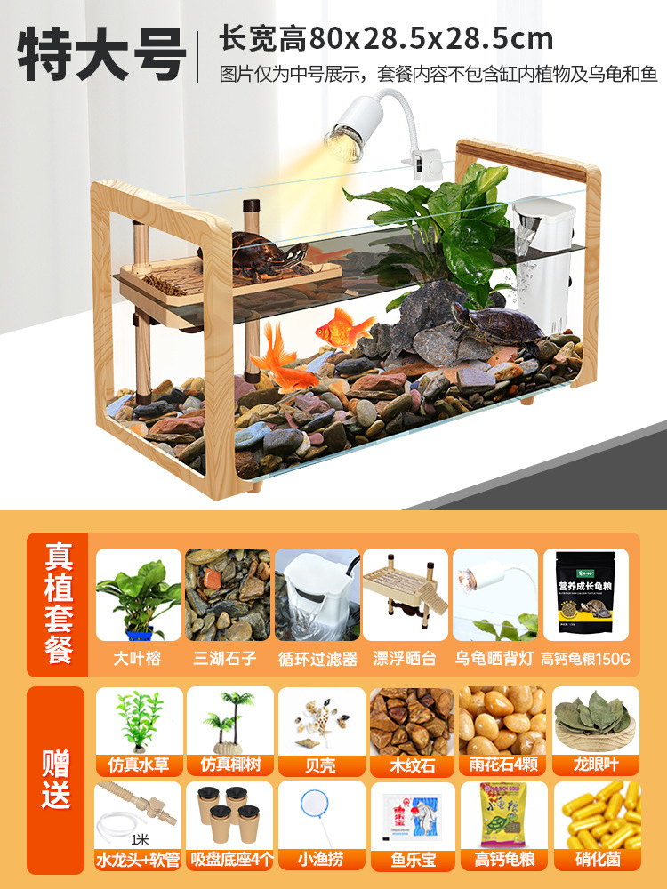 나뭇결 거북이 수조, 초백색 유리 빌라, 생태 일체형 사육 수조, 대형 및 소형 조경 물고기 및 거북이 혼합 사육 수조, 중국스토어 가기