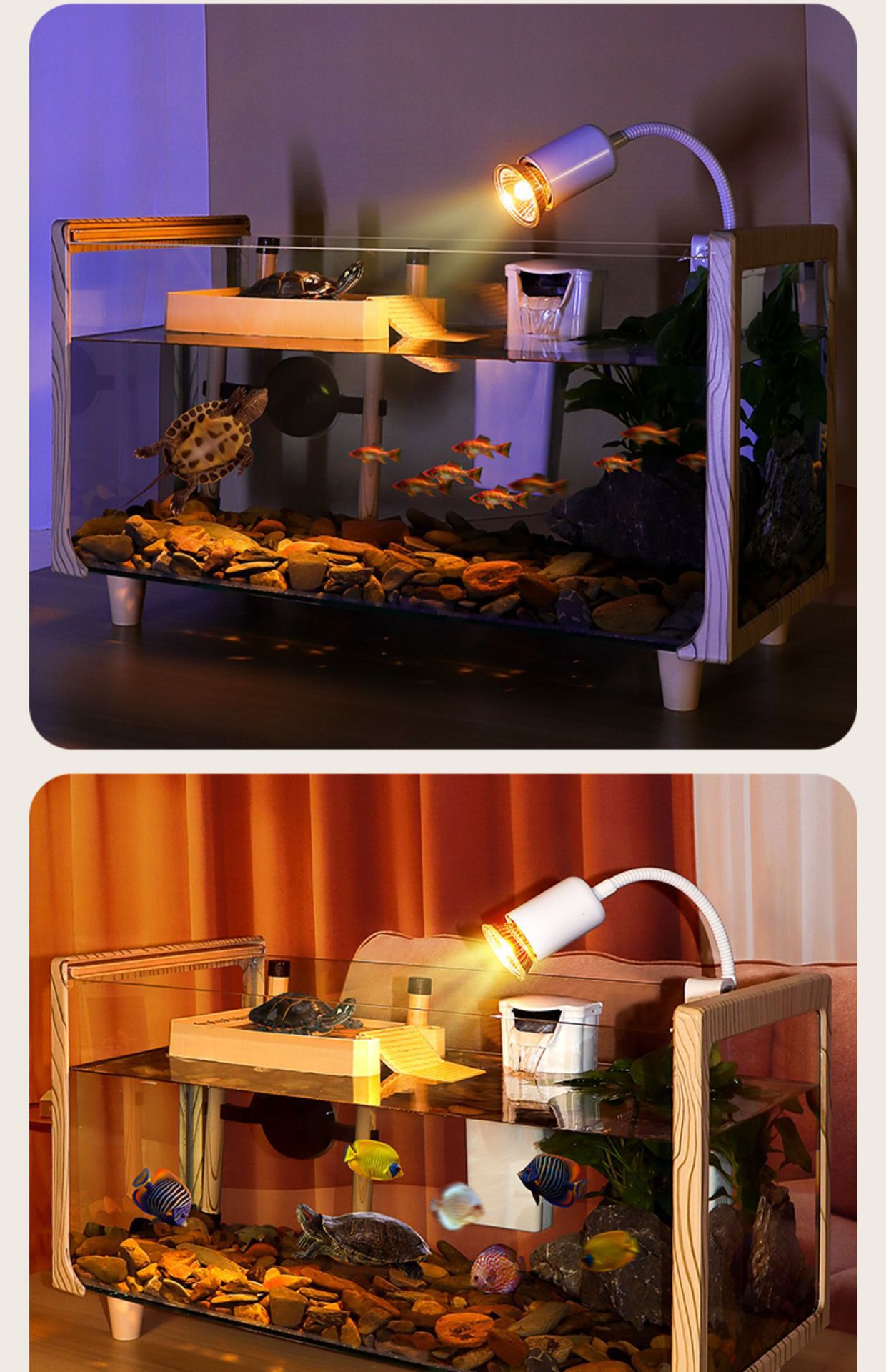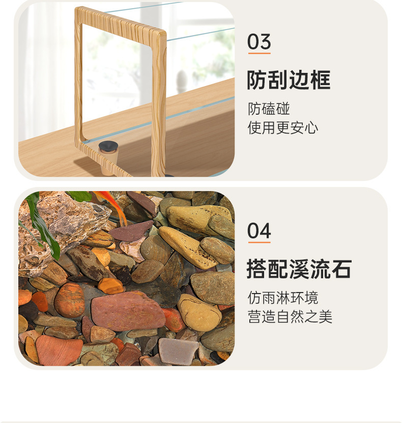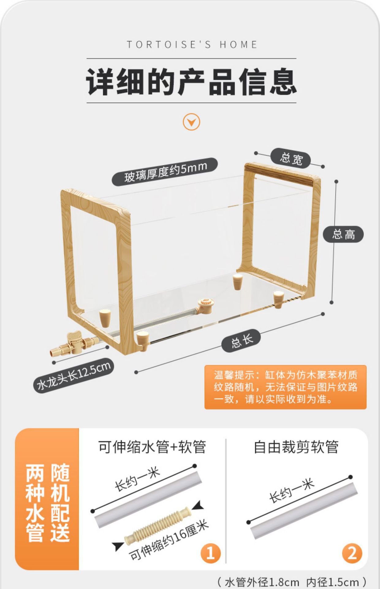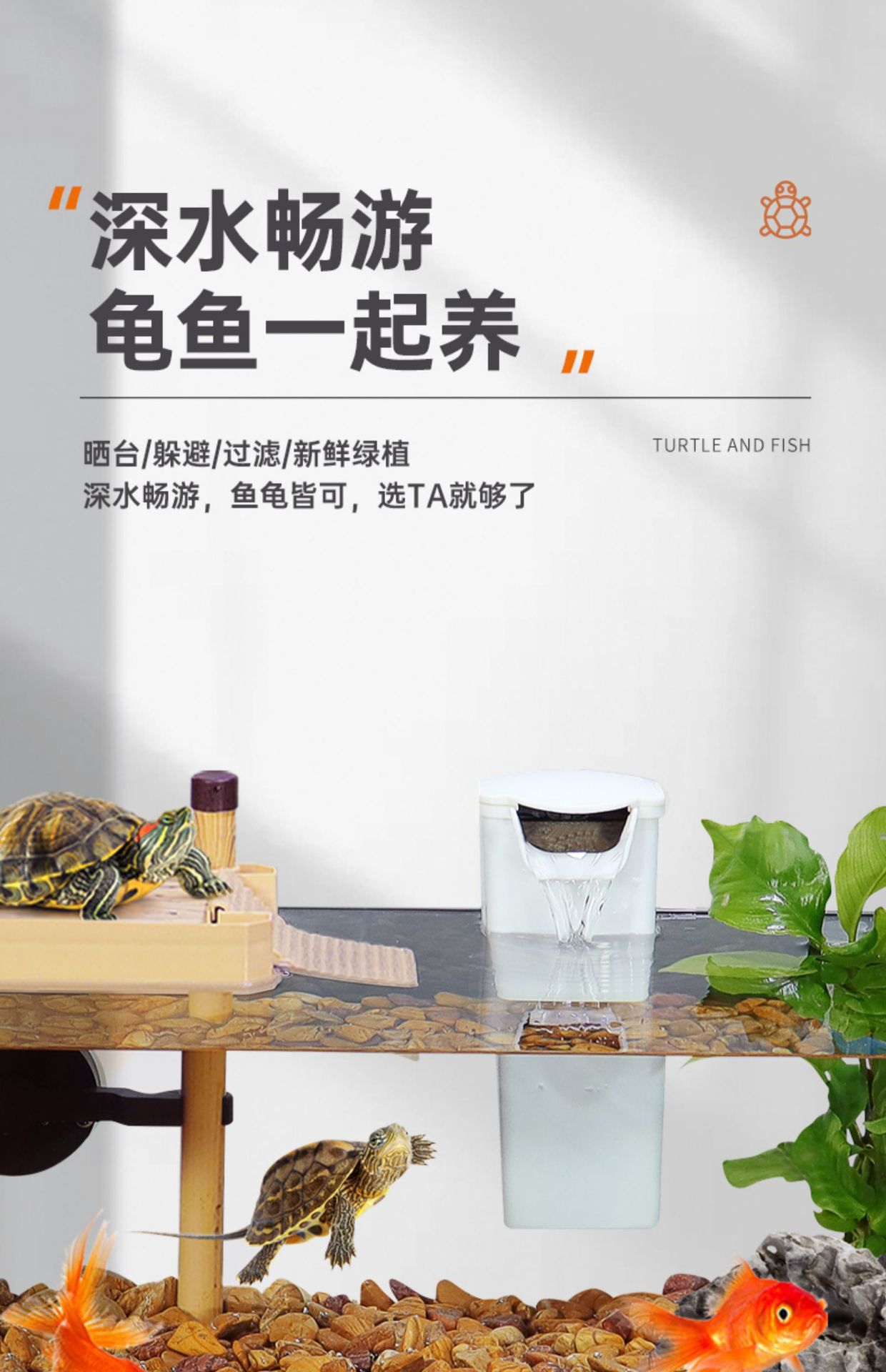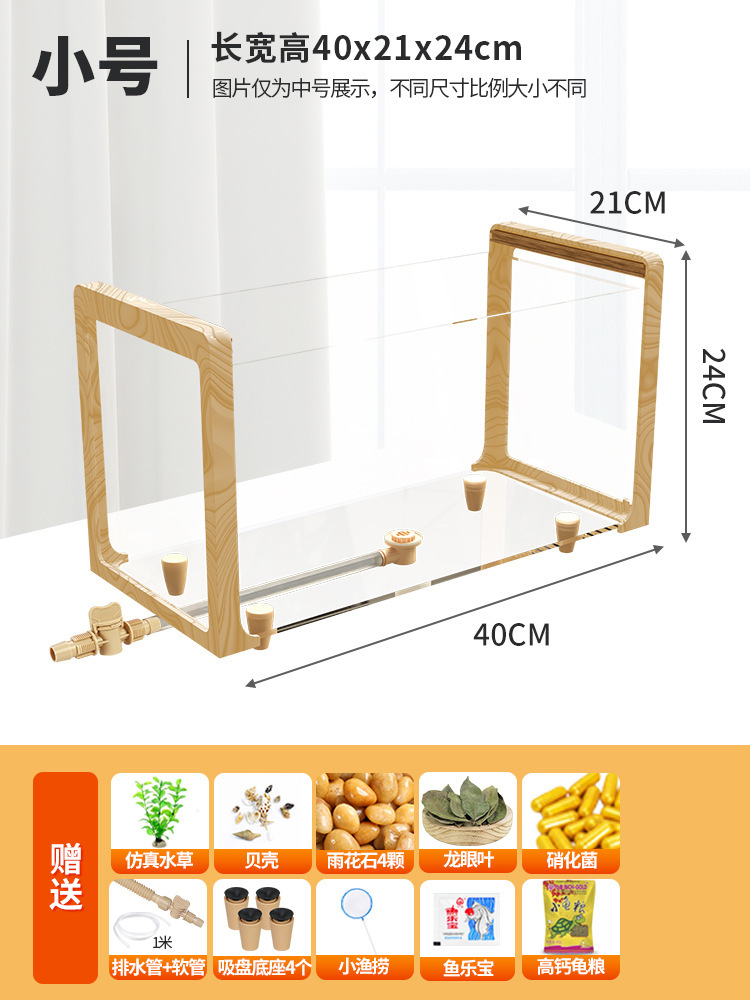 나뭇결 거북이 수조, 초백색 유리 빌라, 생태 일체형 사육 수조, 대형 및 소형 조경 물고기 및 거북이 혼합 사육 수조, 중국스토어 가기