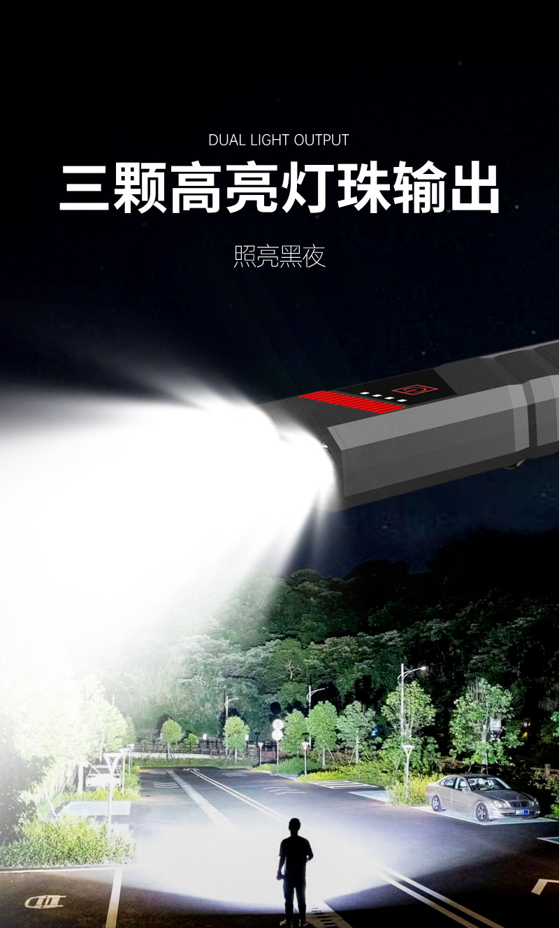 조명 강한 빛 손전등 야외 슈퍼 밝은 휴대용 손전등 꼬리 자기 흡입 맞춤형 손전등 비상 손전등