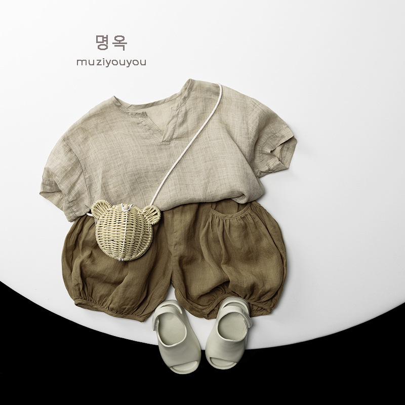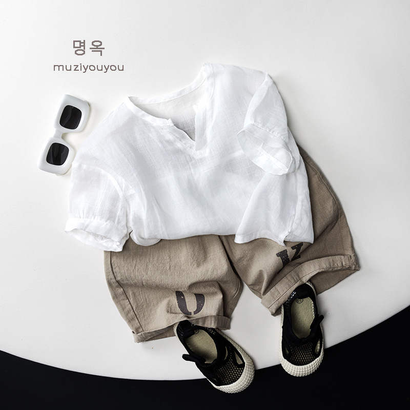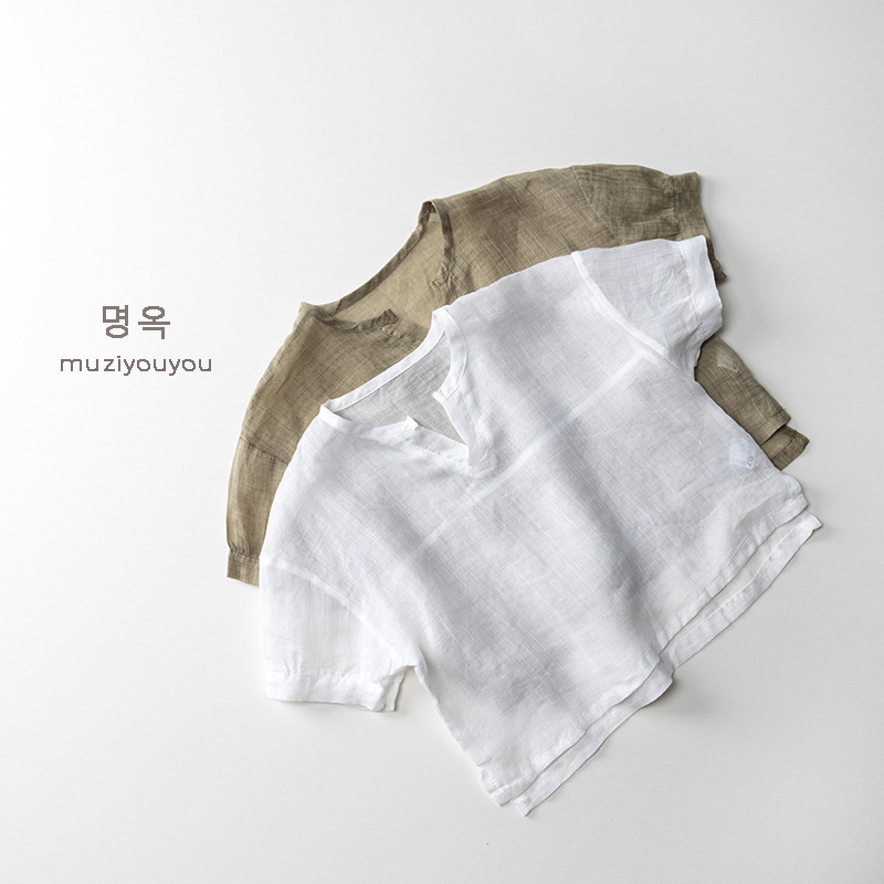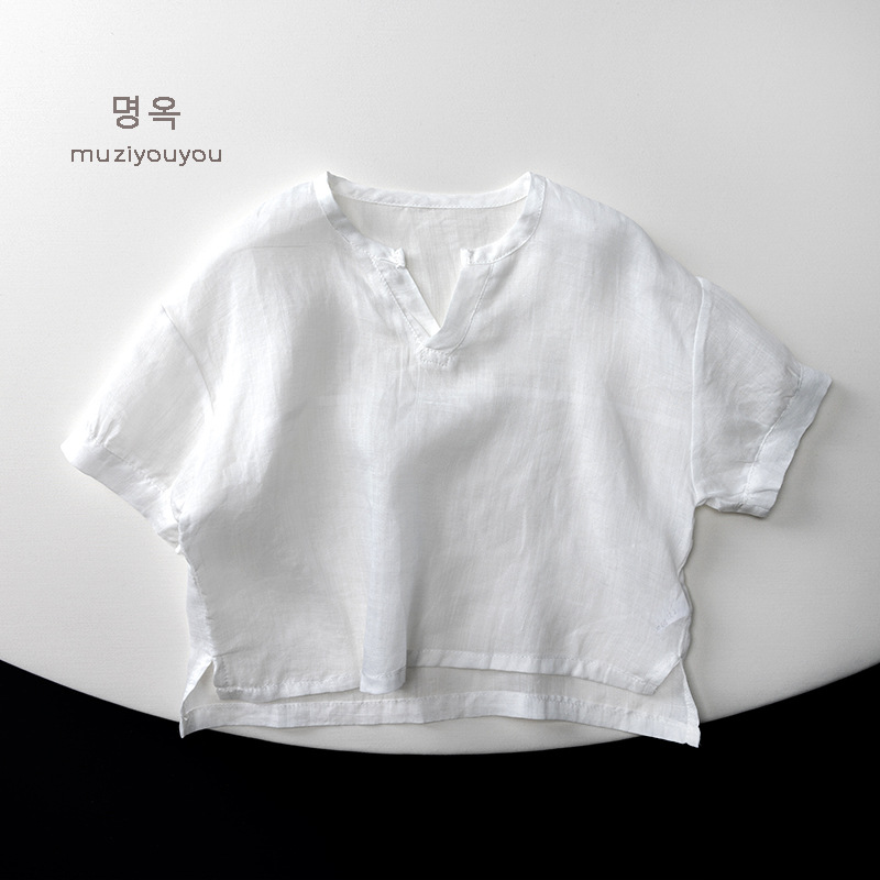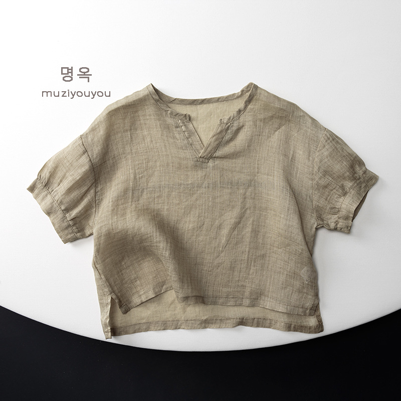 순수 모시 소재의 티셔츠~26 여름 신상 남아 여아 시원하고 통기성 좋은 얇은 티셔츠 상의 아동용 일본 및 한국 스타일 아동복스토어 가기