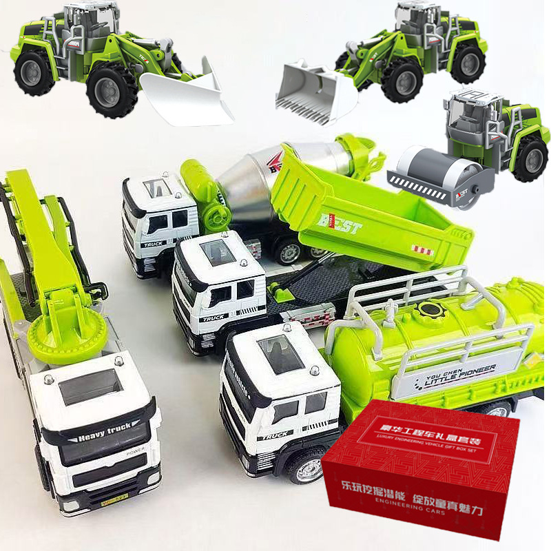 합금 시뮬레이션 엔지니어링 차량 관성 믹서 트럭 탱크 트럭 불도저 덤프 트럭 크레인 굴삭기 모델 선물 상자