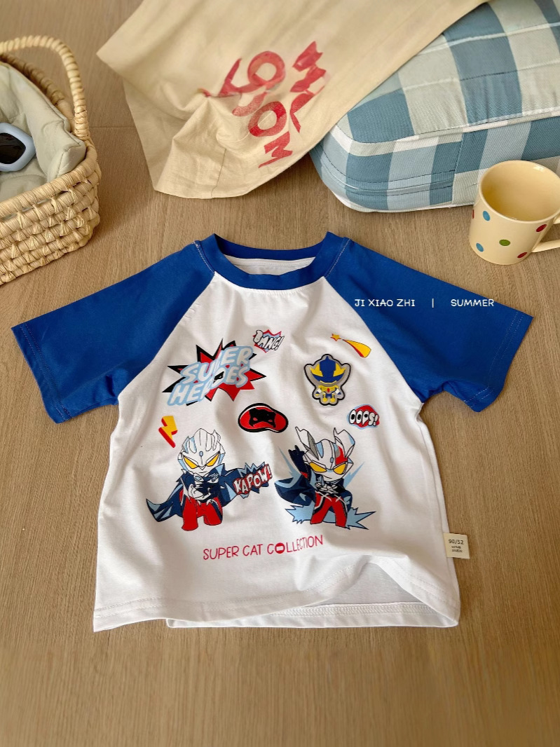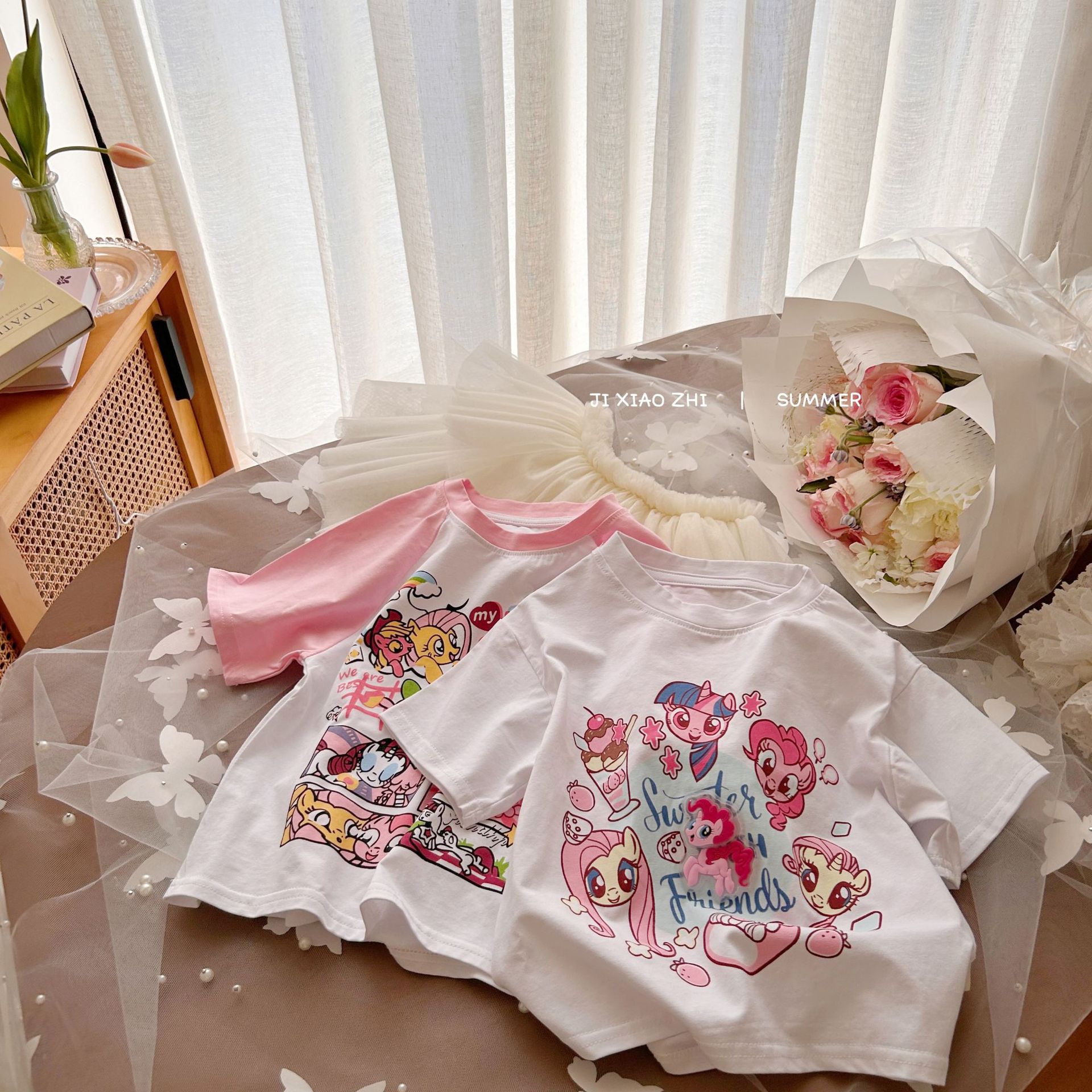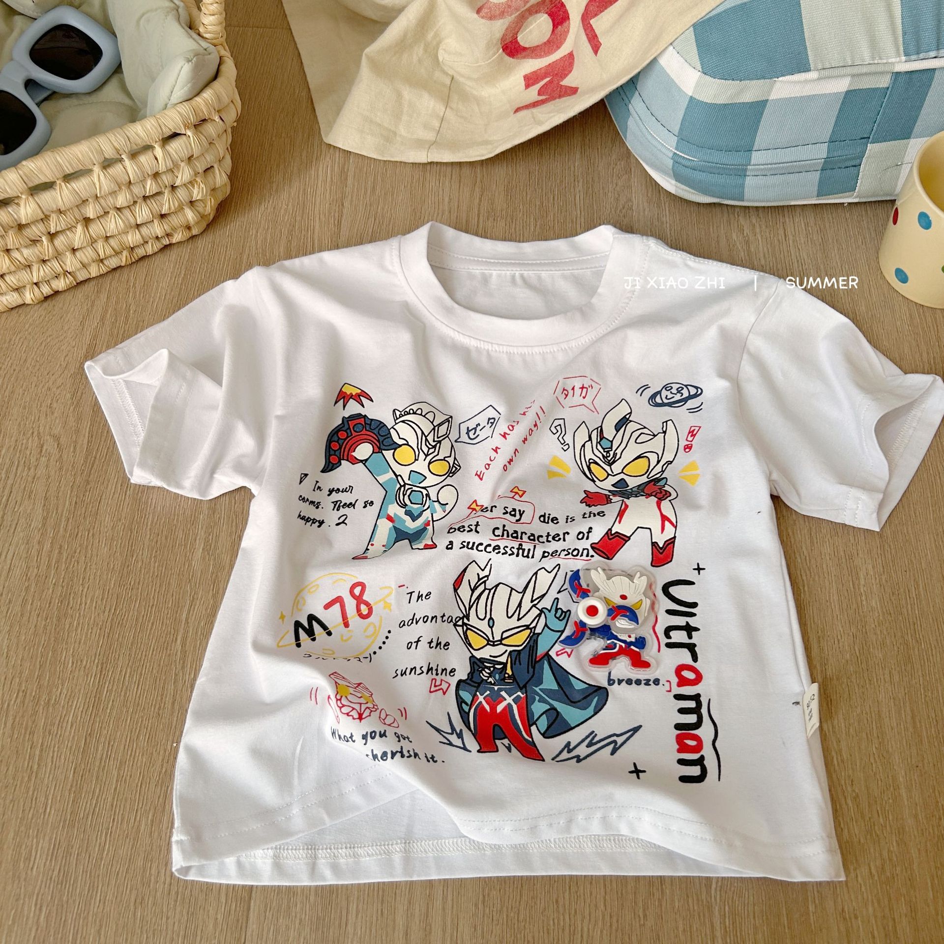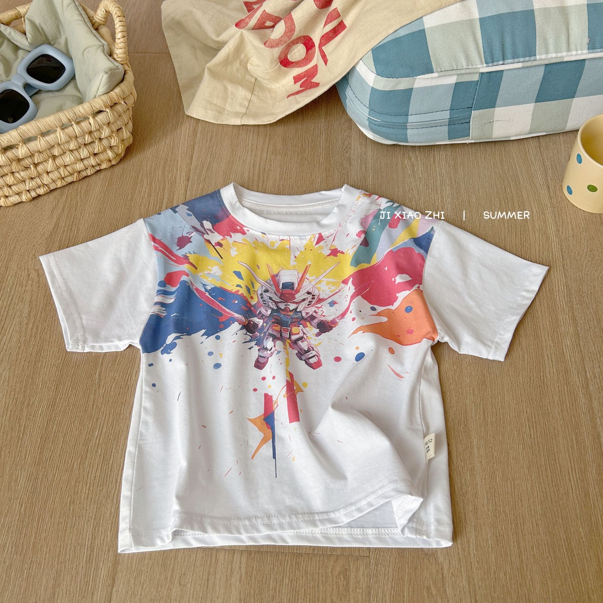 대형 및 소형 롤 라이트 반팔 티셔츠 여름 신작 어린이 순면 라이트 탑 귀여운 트렌디 바닥 셔츠-39589