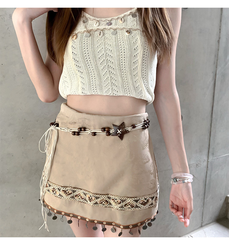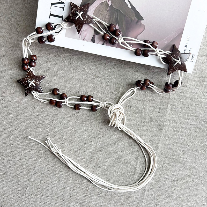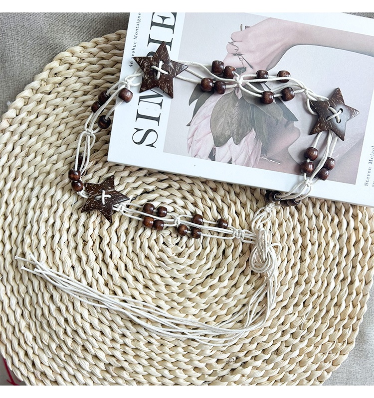 여성용 스커트 허리 조절용 레트로 스타 비즈 대마 로프 벨트, 에스닉 스타일 보헤미안 허리 로프 허리 체인 브레이드