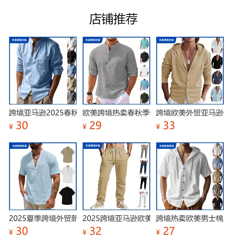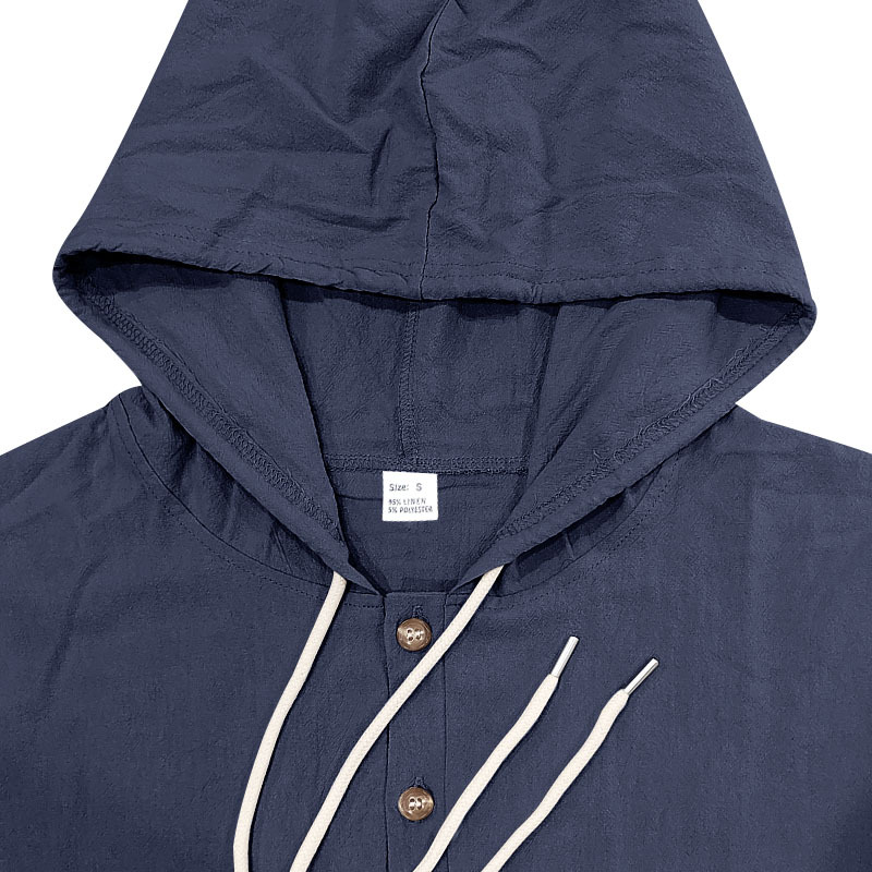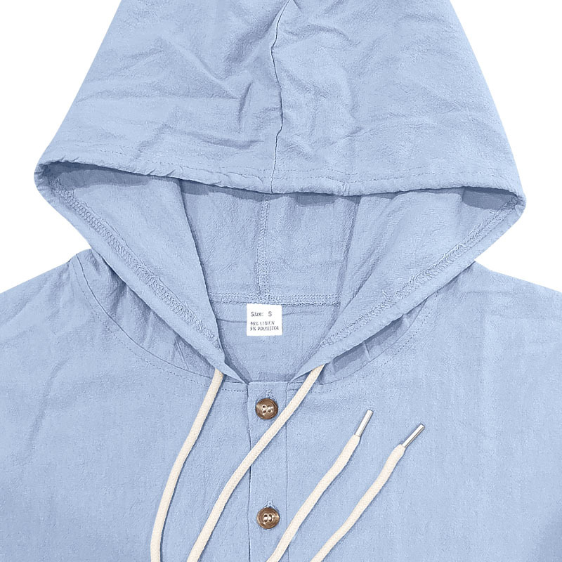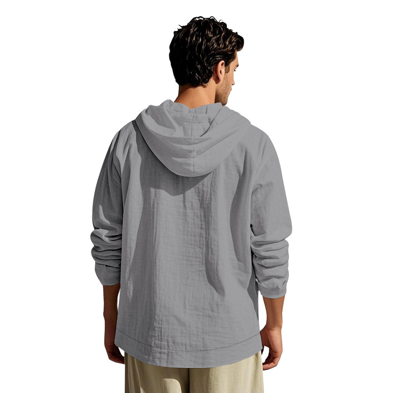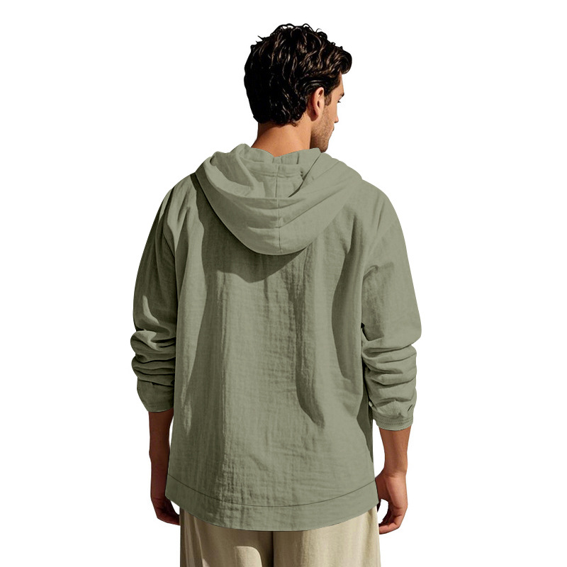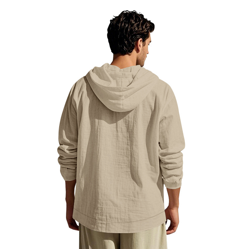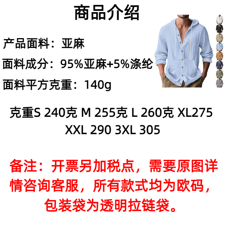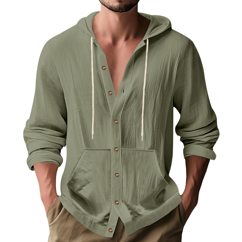 아마존 국경 간 핫 세일 시즌 포켓 코튼 린넨 캐주얼 긴팔 셔츠 후드 고품질 트렌디 남성스토어 가기