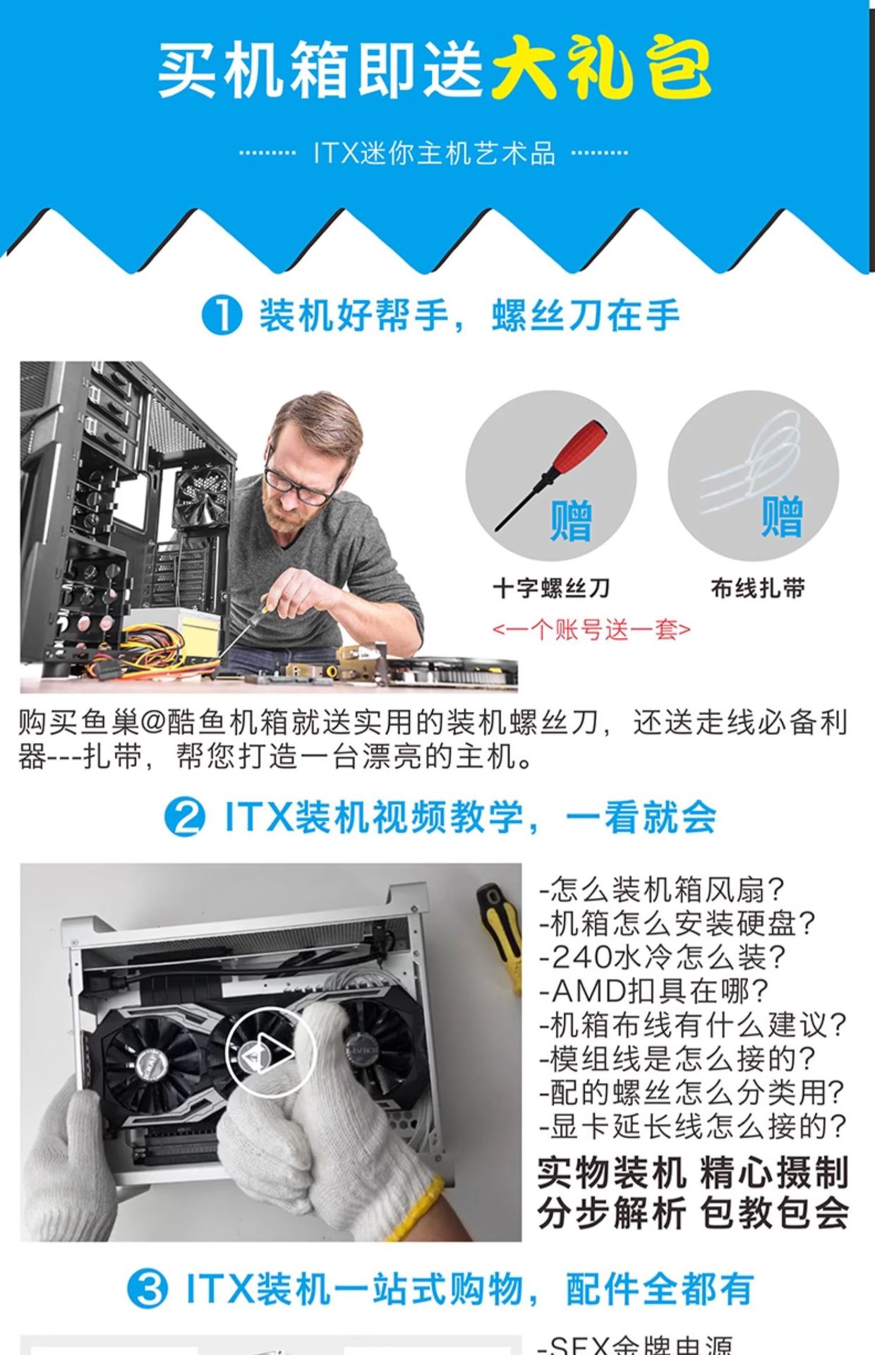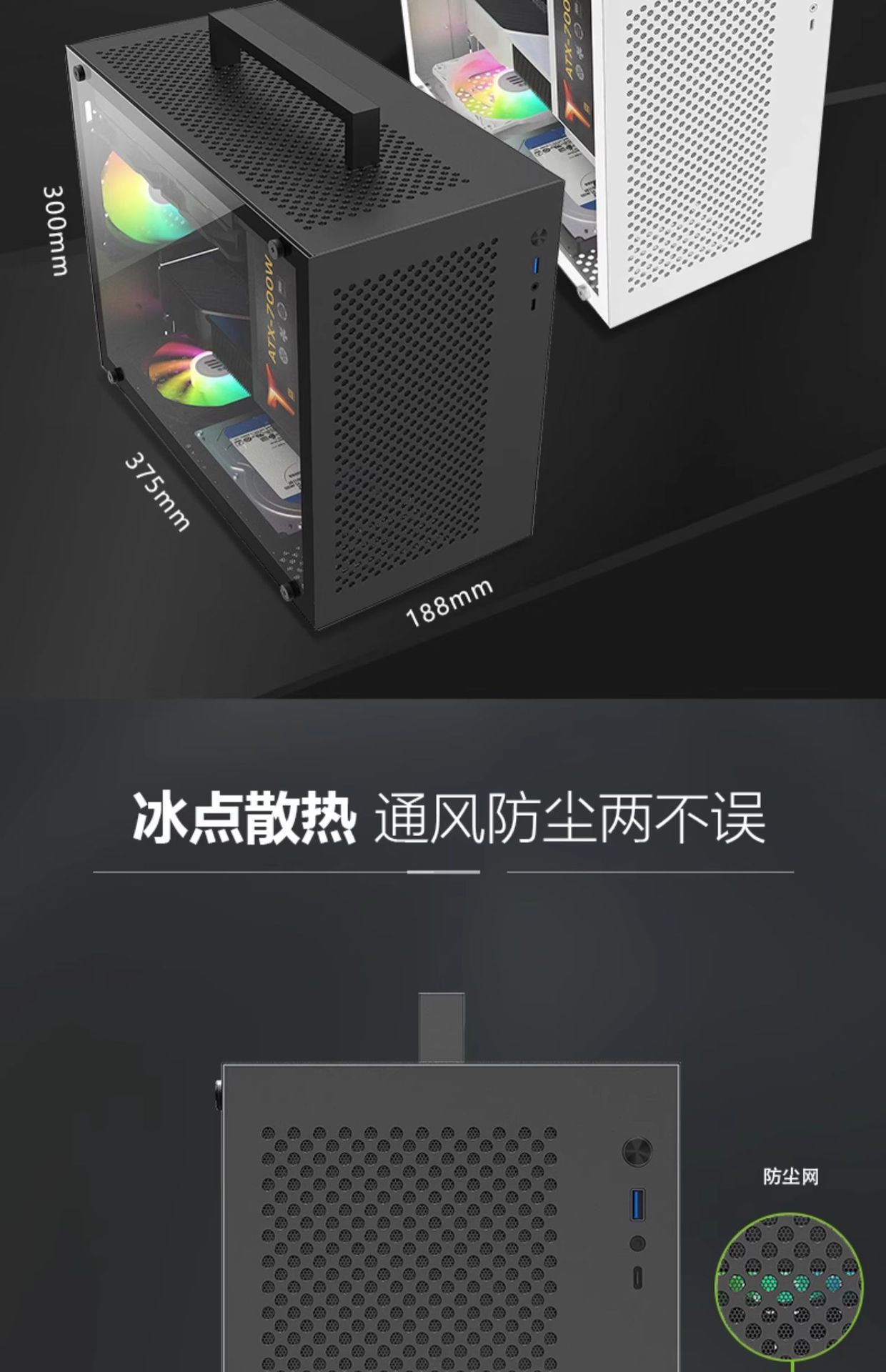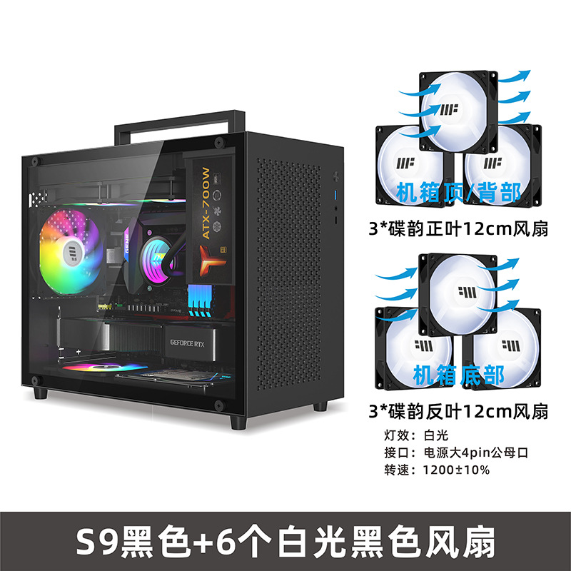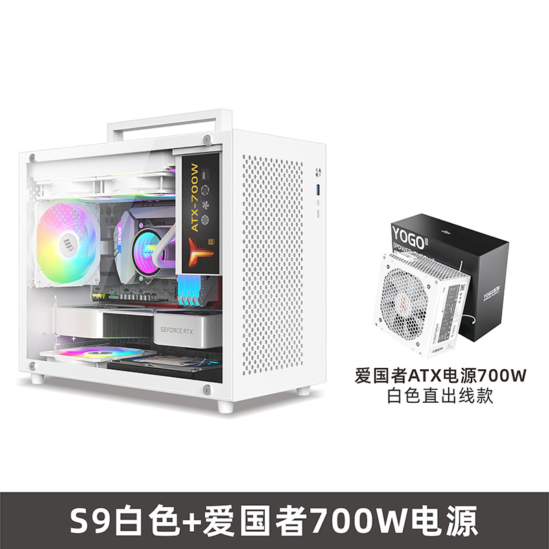 Fish Nest S9 섀시 M-ATX 컴퓨터 데스크탑 빈 메인 섀시 흰색 240 수냉식 측면 투명 휴대용 미니 데스크탑스토어 가기