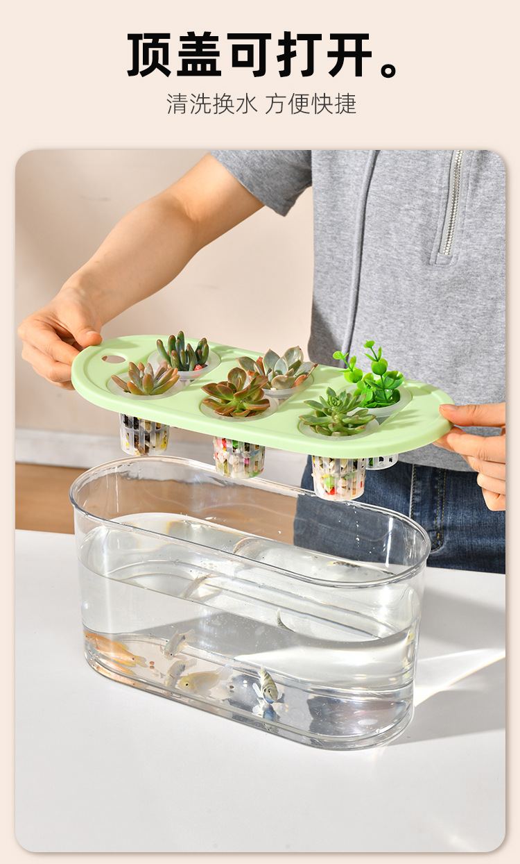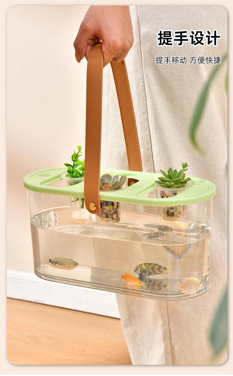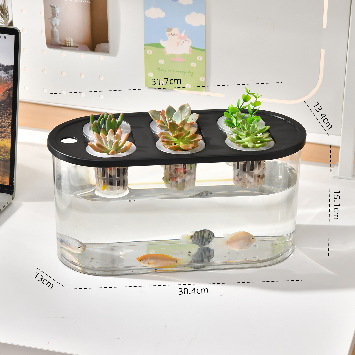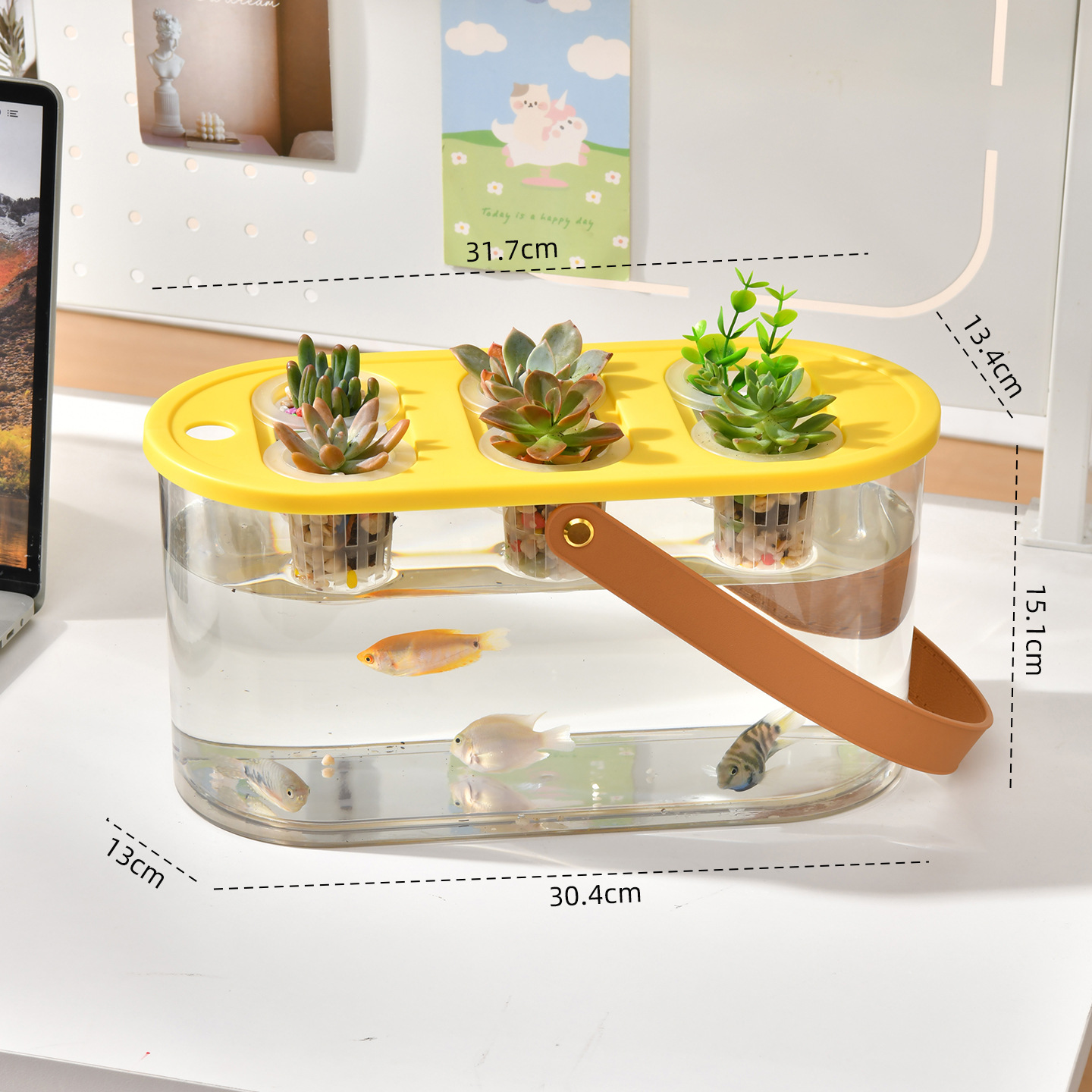 사무실 책상용 어항, 무토양 재배 수경재배 상자, 야외 휴대용 뚜껑 있는 조경용 금붕어 어항, 수중재배 휴대용스토어 가기
