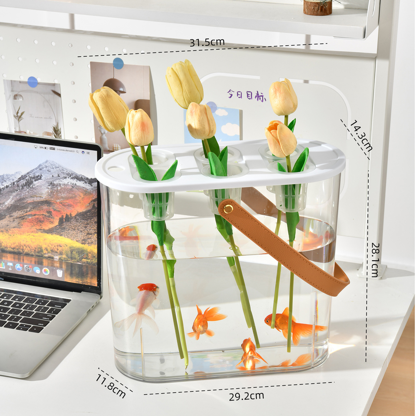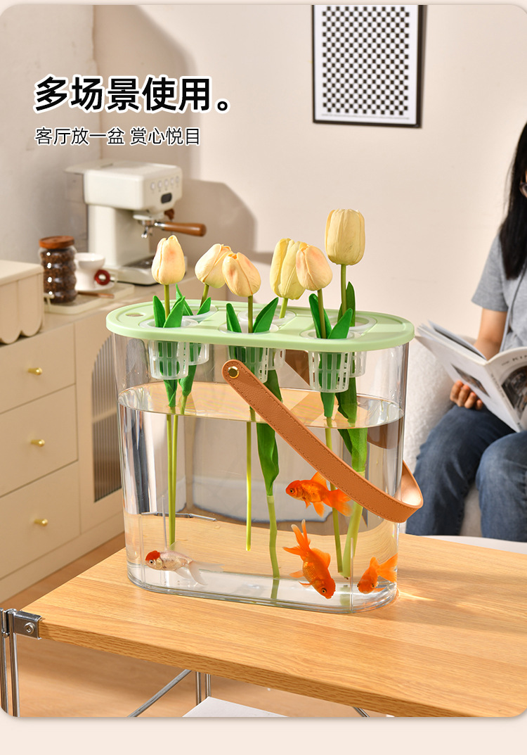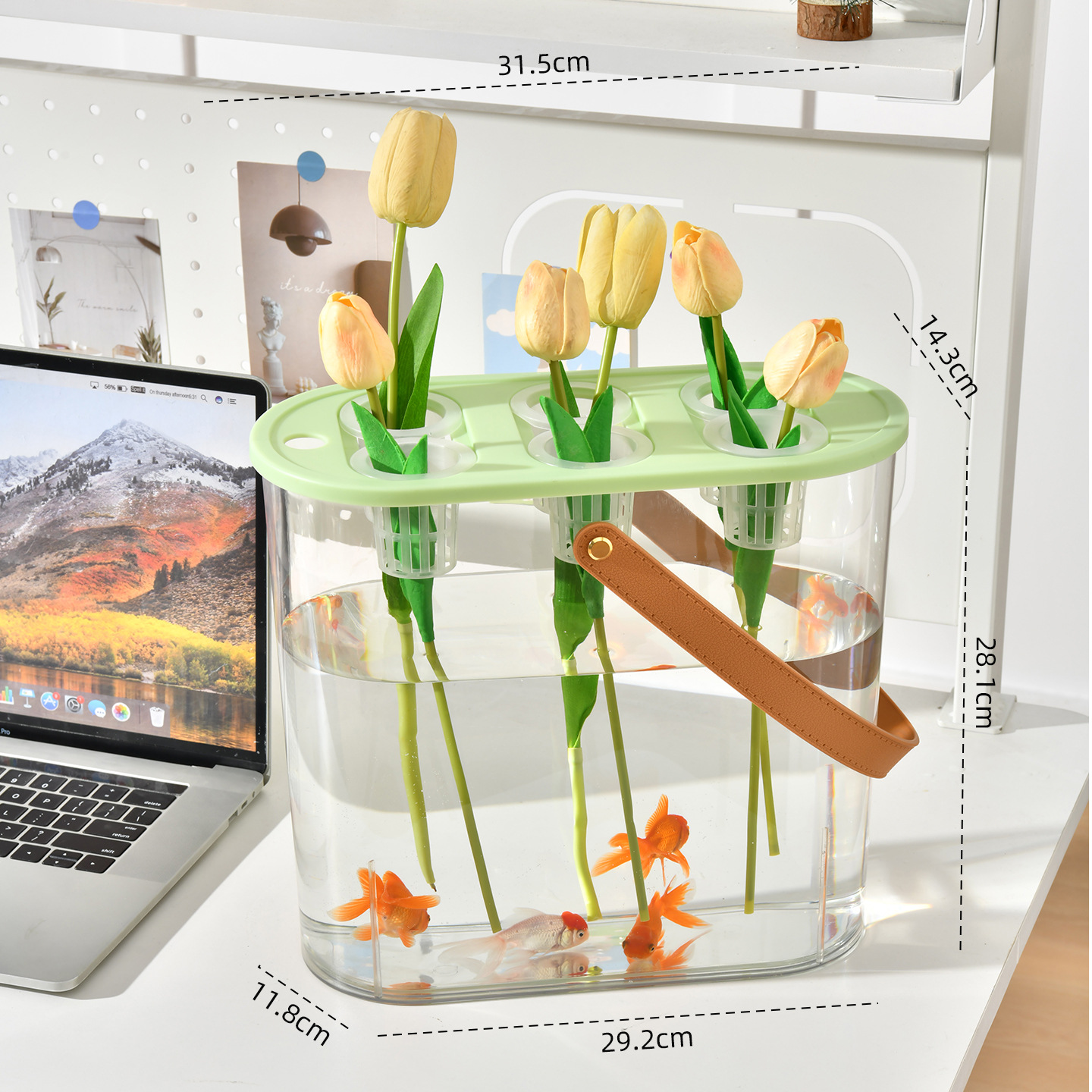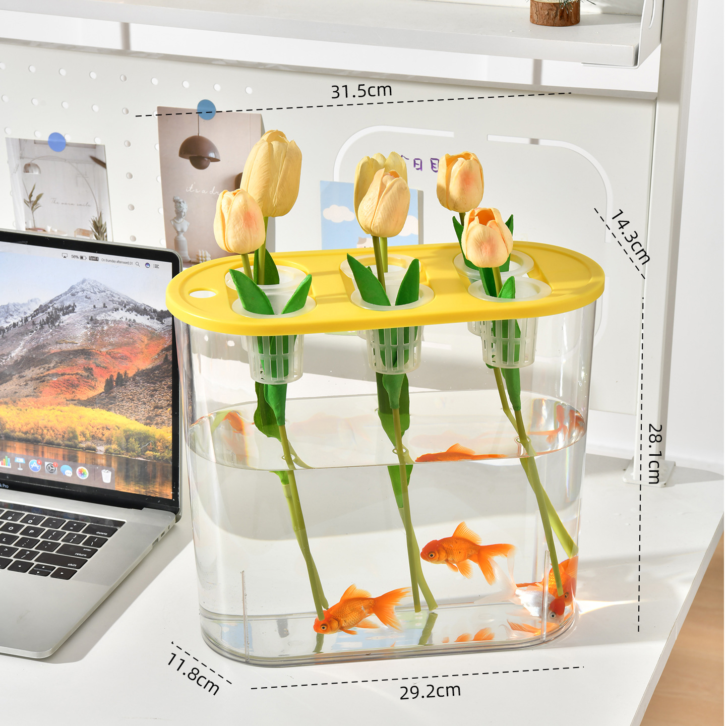 사무실 책상용 어항, 무토양 재배 수경재배 상자, 야외 휴대용 뚜껑 있는 조경용 금붕어 어항, 수중재배 휴대용스토어 가기