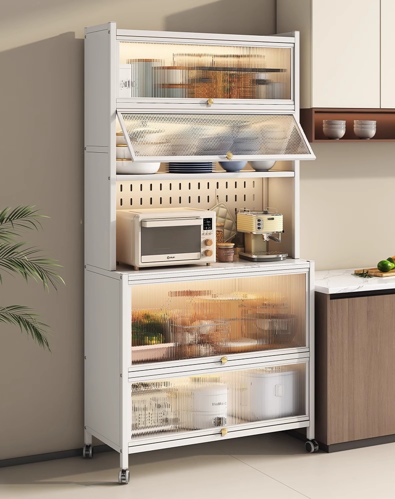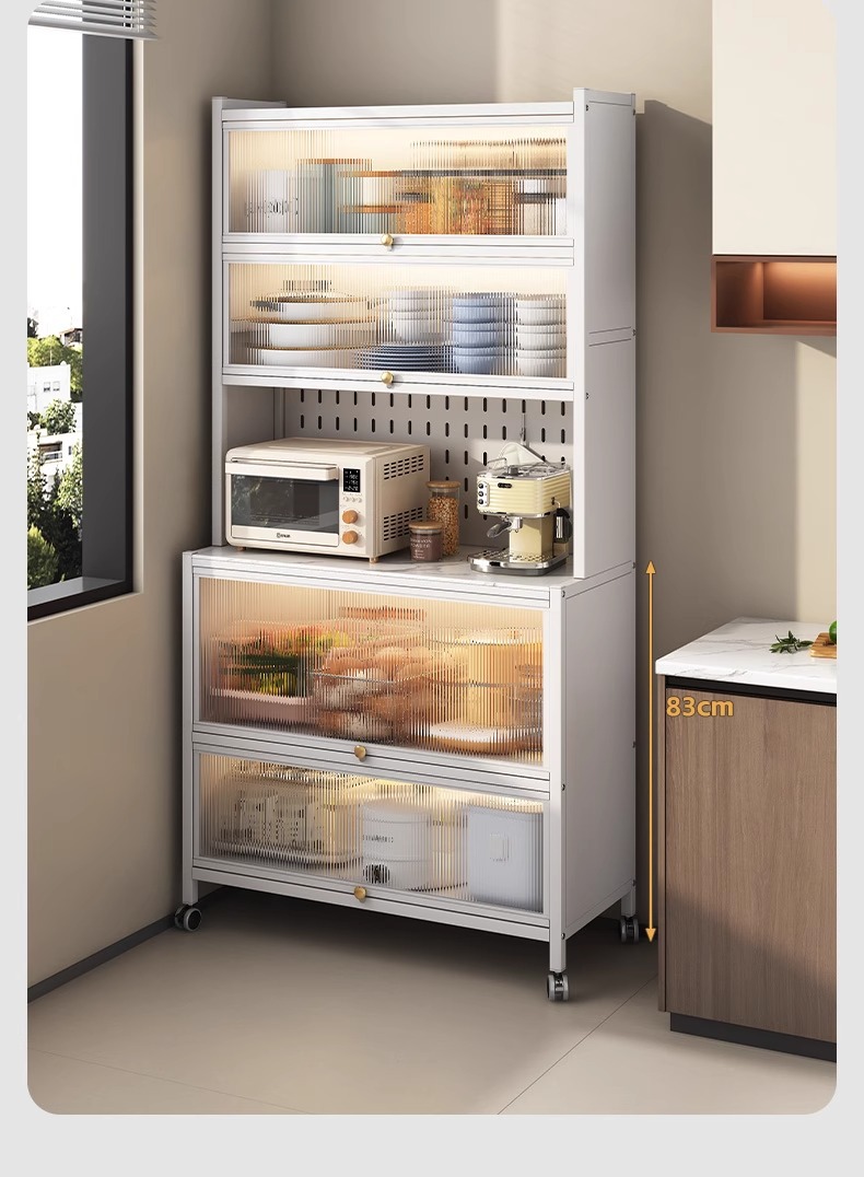 주방 홀 보드 수납 선반 찬장 플러스 와이드 도어 플로어 스탠딩 전기 제품 전자 레인지 냄비 수납 수납 캐비닛