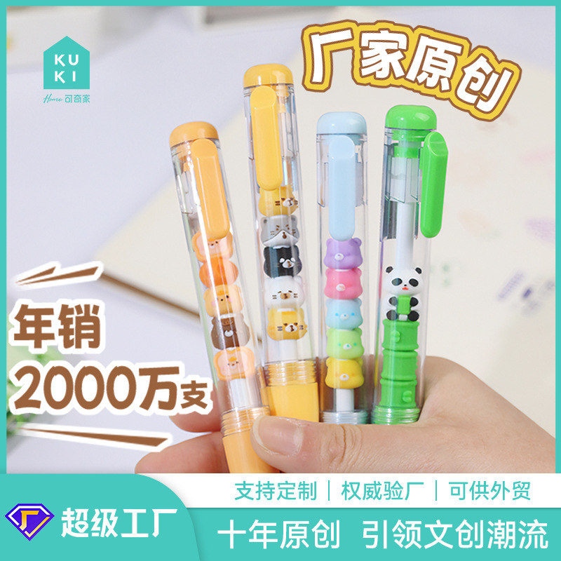KUKI Kuki Jia Chuan Chuan 레이스 프레스 젤 펜 귀여운 팬더 크리 에이 티브 초등 학생 문구 대량 도매스토어 가기