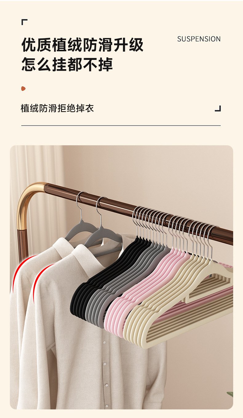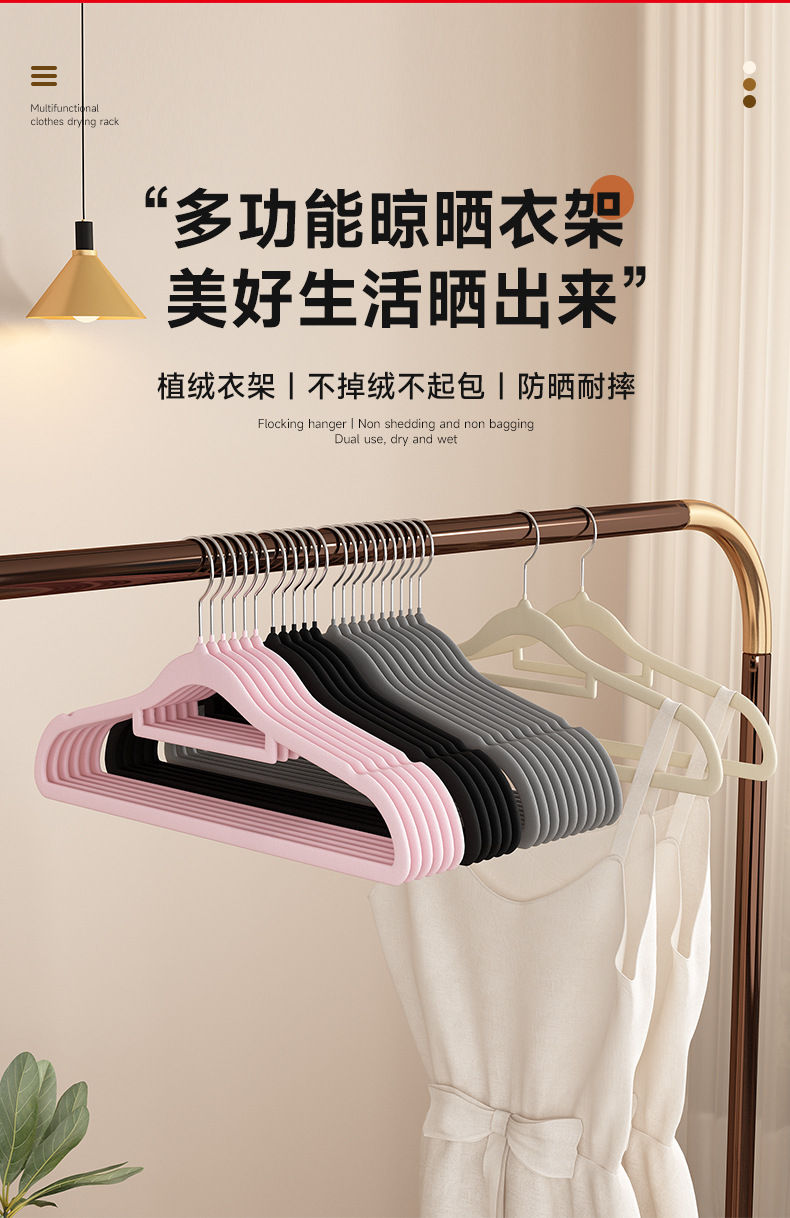 미끄럼 방지 가정용 플록 옷걸이, 옷걸이, 의류 매장 어깨 코너, 흔적 없는 옷장 수납 유물, 수납 전문가스토어 가기