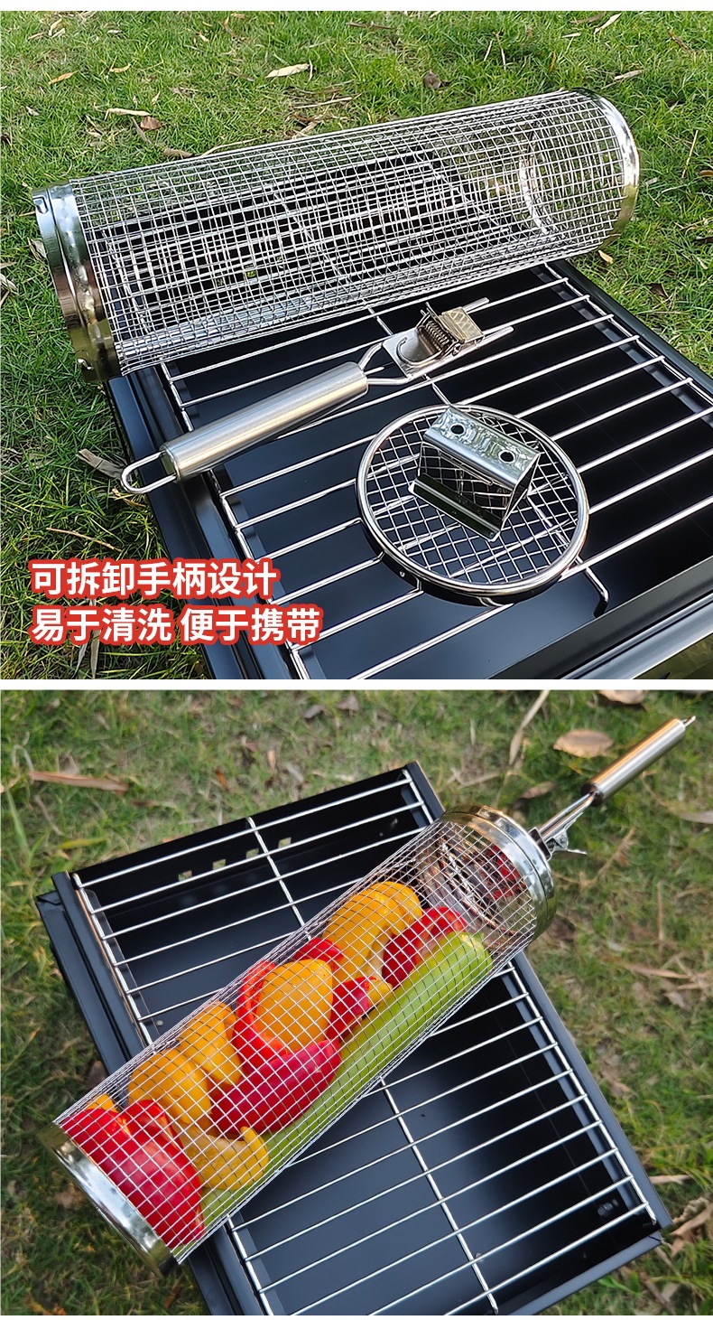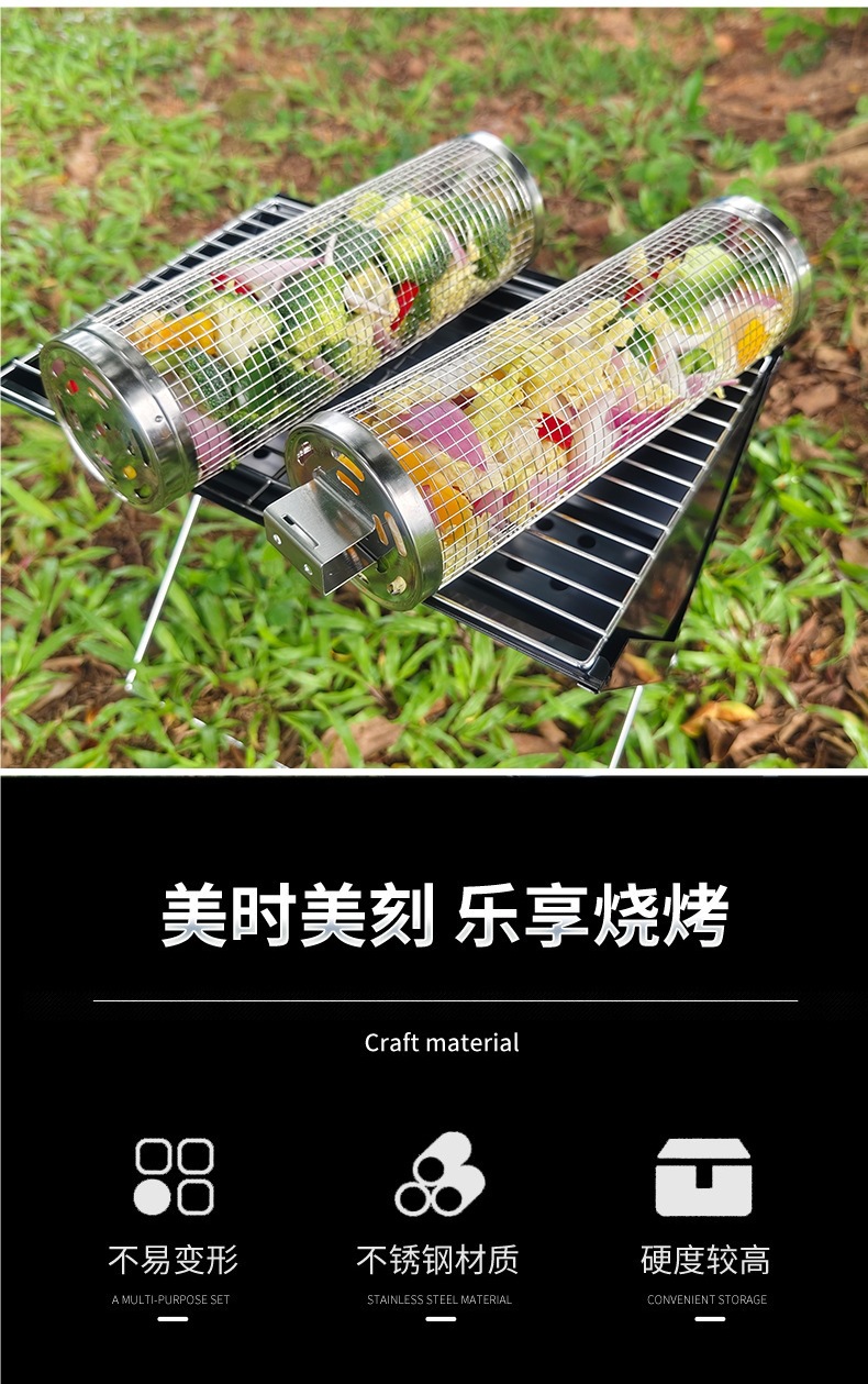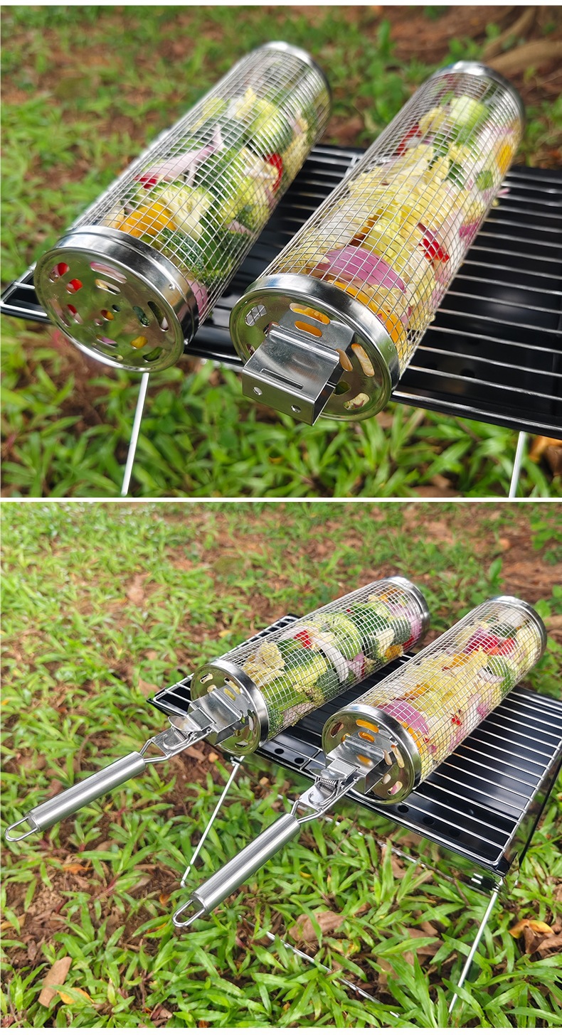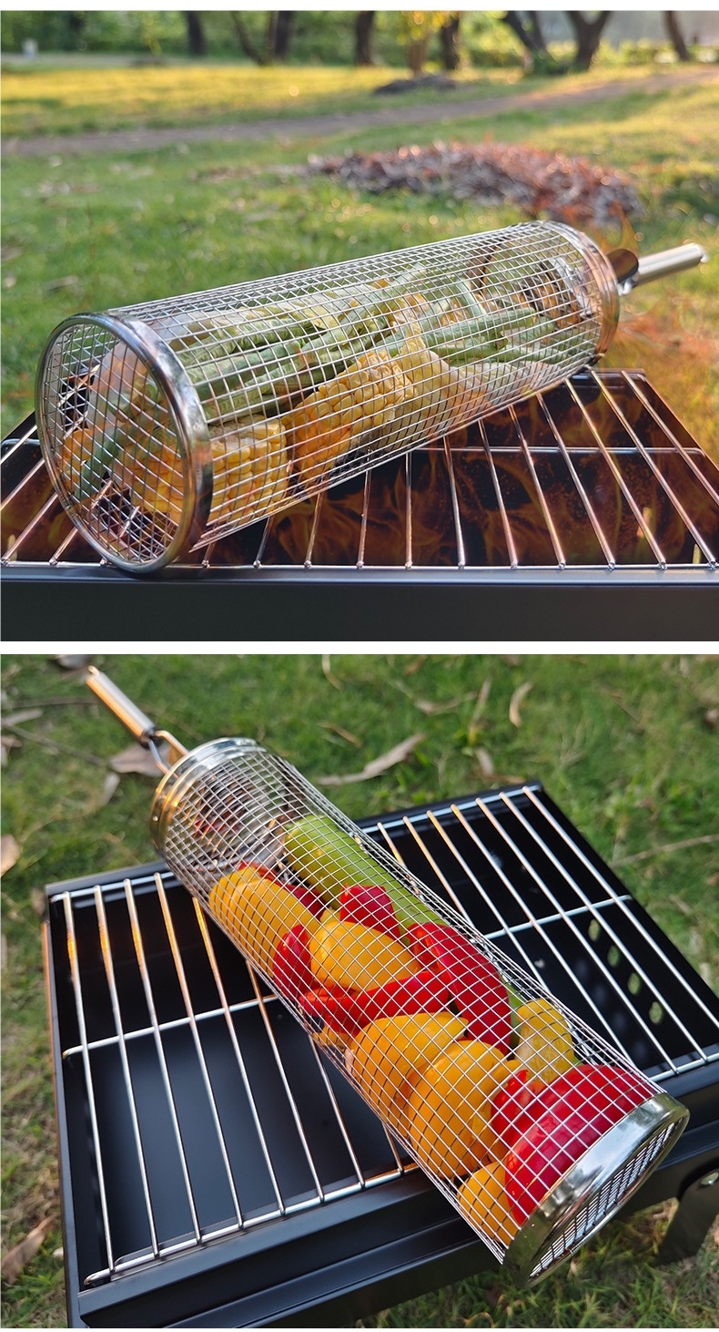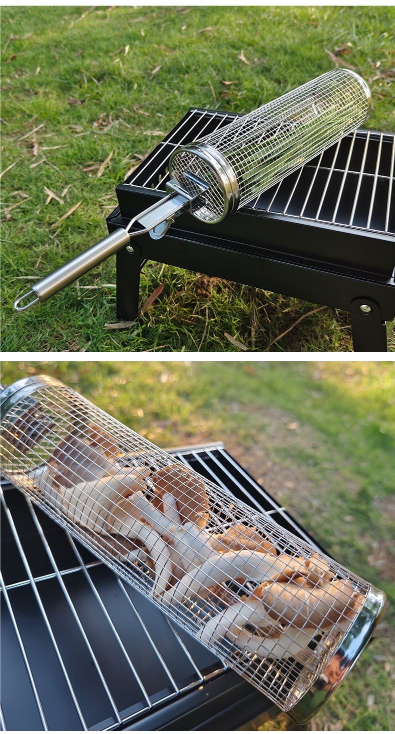 바베큐 스테인레스 스틸 롤링 그릴 바베큐 라운드 스모킹 튜브 그릴 그릴 바구니 야외 케이지 스토브 도구 클래식 바베큐스토어 가기