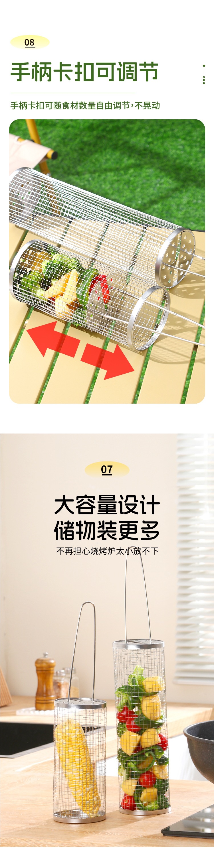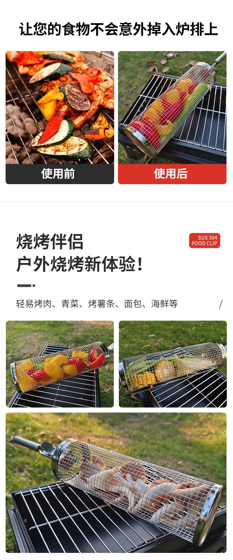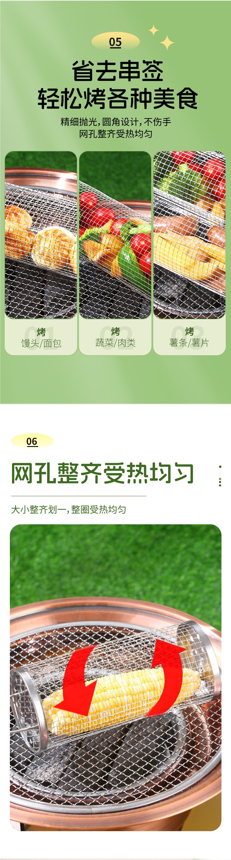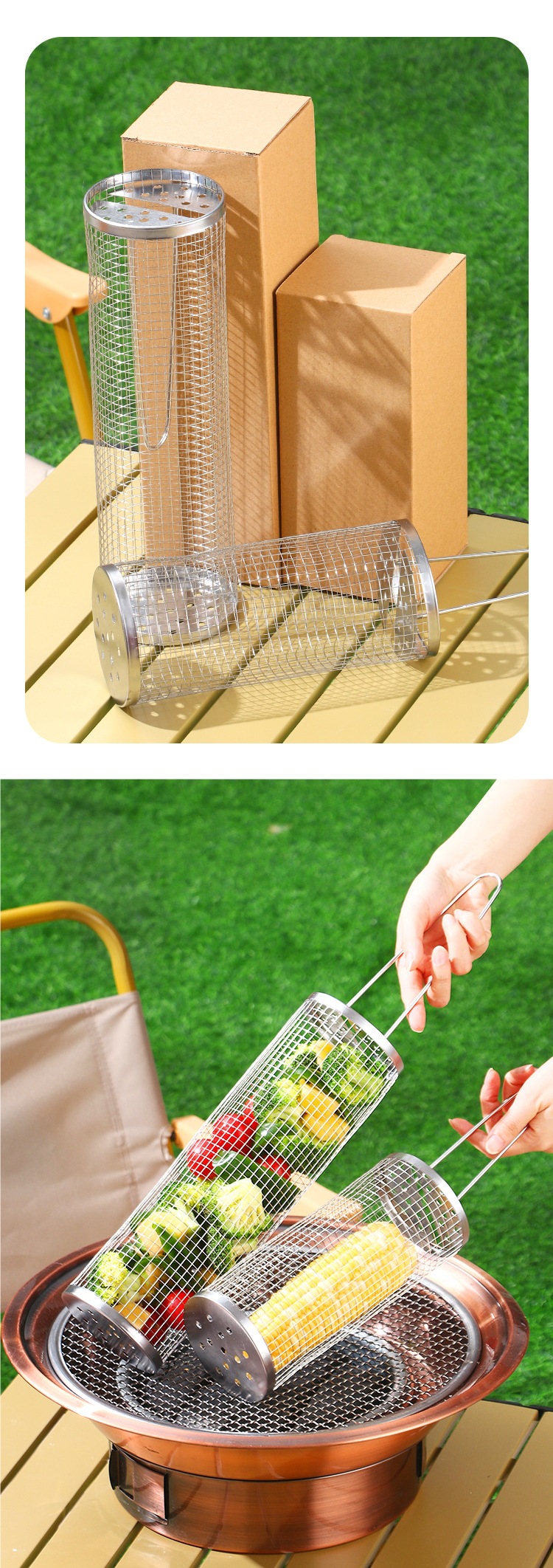 바베큐 스테인레스 스틸 롤링 그릴 바베큐 라운드 스모킹 튜브 그릴 그릴 바구니 야외 케이지 스토브 도구 클래식 바베큐스토어 가기