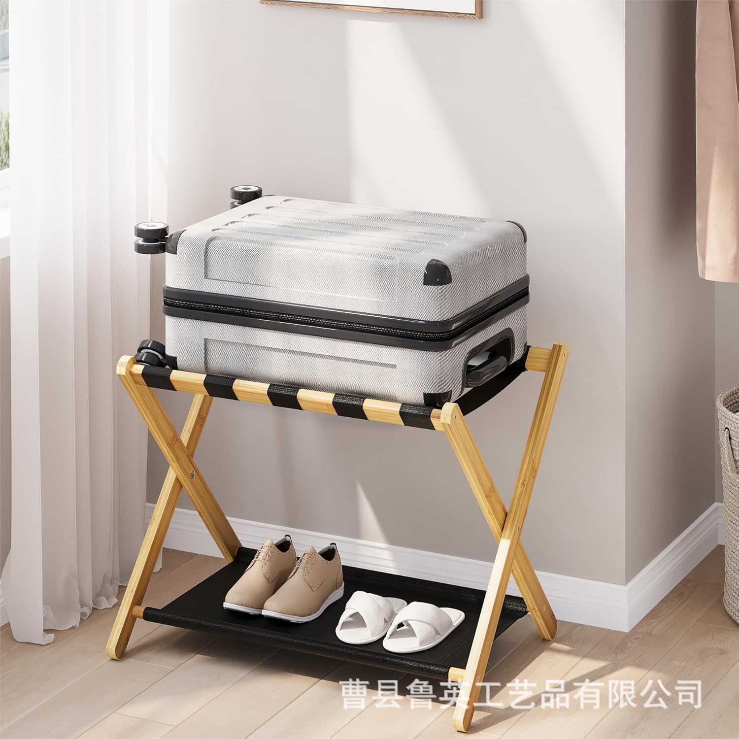 대나무 수하물 랙 호텔 2층 침실 옷 임시 보관 가방 랙 접이식 바닥에서 천장까지 가정용 수납 랙