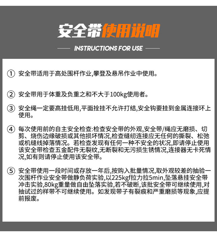 안전로프 전신안전벨트 고공작업용 실외 5점 전력보호벨트 f 건설낙하보험