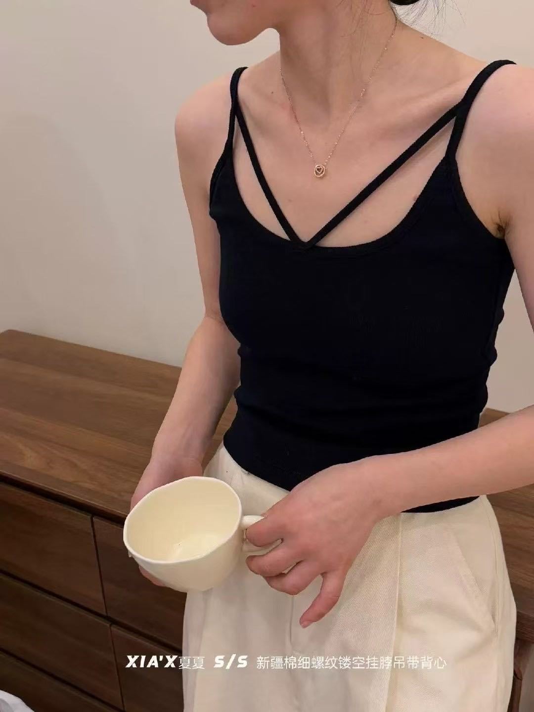 2735 # 여름 신상 가슴 크로스 캐미솔 슬림하고 섹시한 여성용 U자형 아름다운 백탑