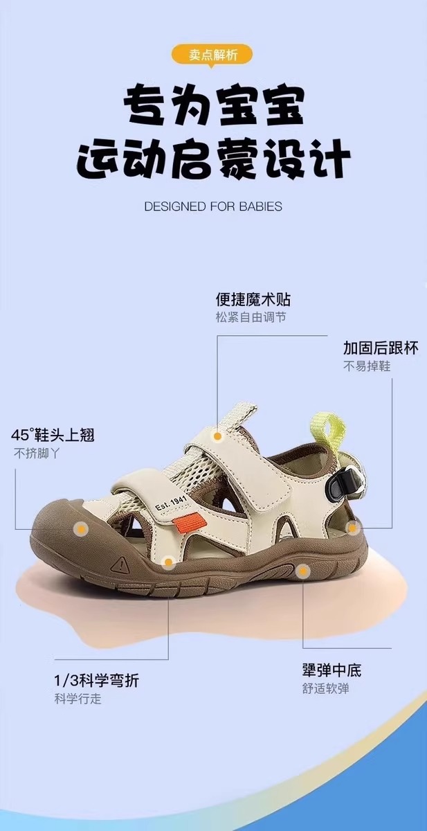 남아 샌들 여름 모델 2026년 신상 아동용 미끄럼 방지 유아 남아 학생용 앞코가 덮힌 스포츠 비치 샌들스토어 가기
