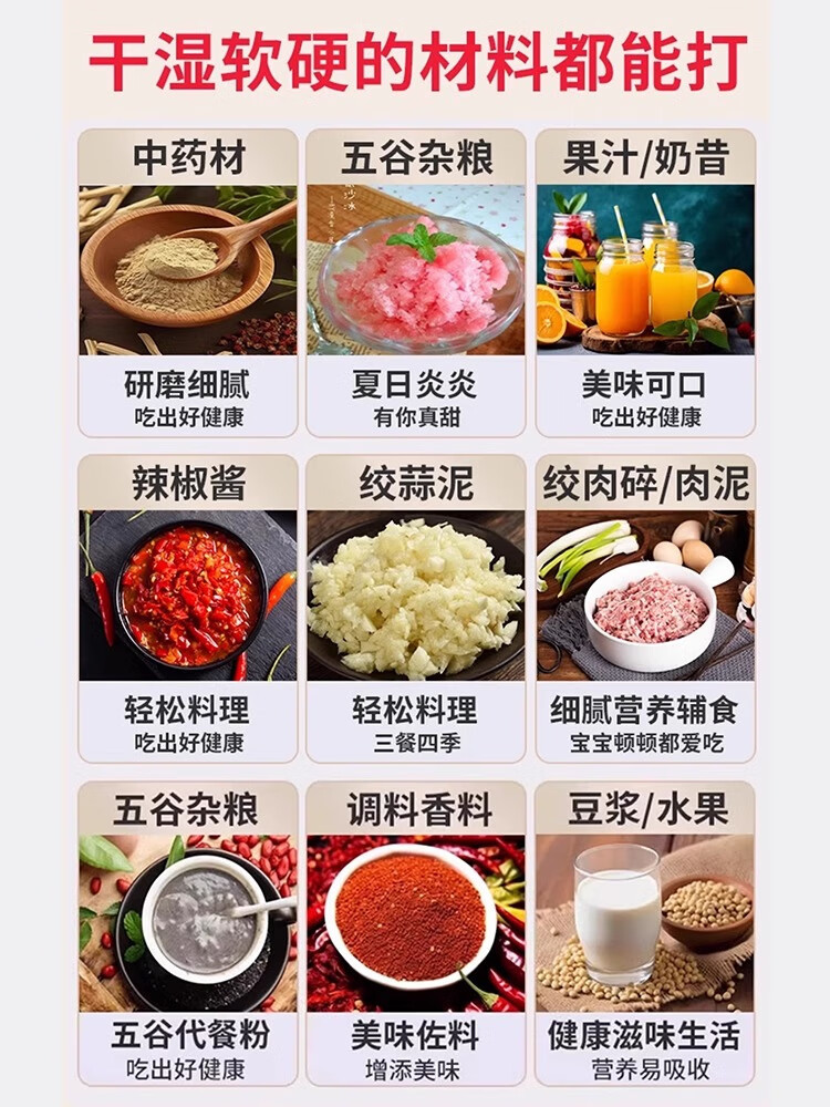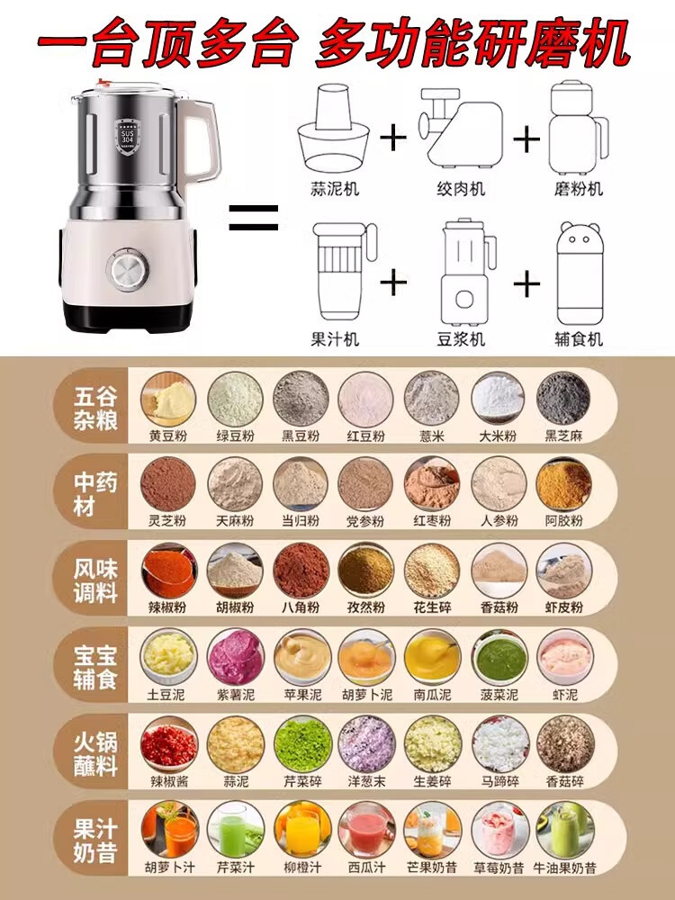 습식 및 건식 분쇄기, 가정용 분쇄기, 한약 분말 분쇄기, 곡물 분쇄기, 벽 파괴기, 고기 분쇄기