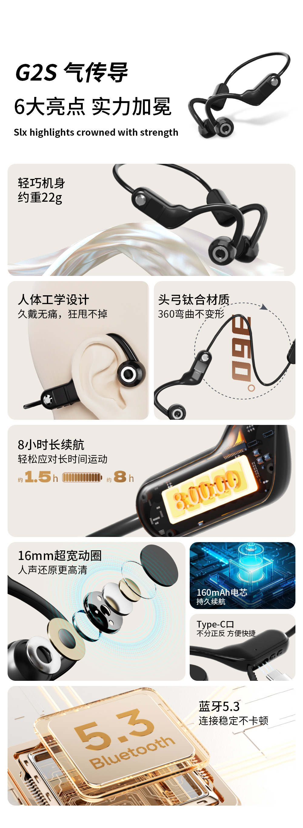 G2S 초장기 배터리 수명 공기 전도 블루투스 헤드셋 무선 오픈형 비인이어 무통 스포츠 러닝 헤드셋