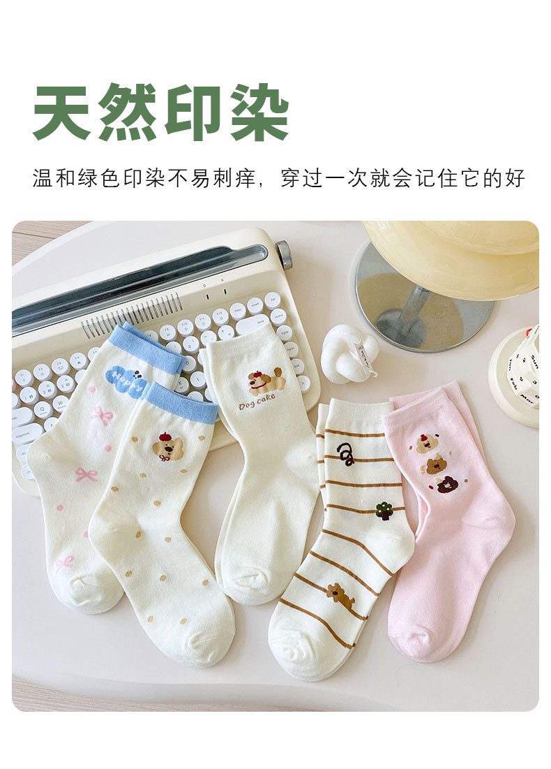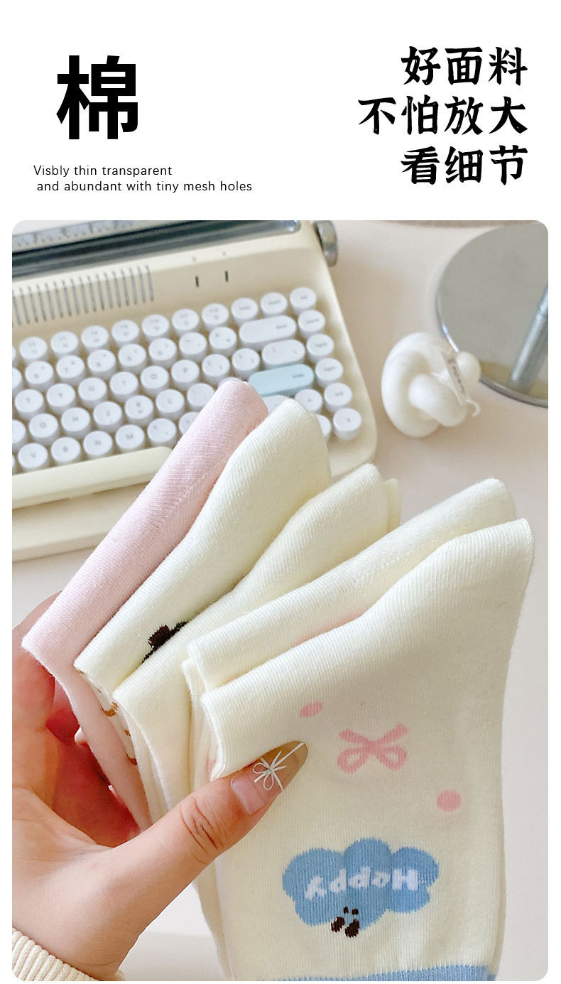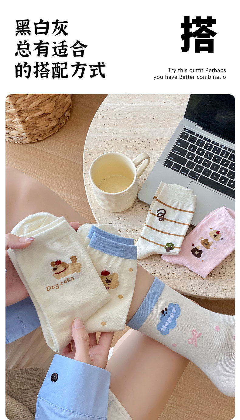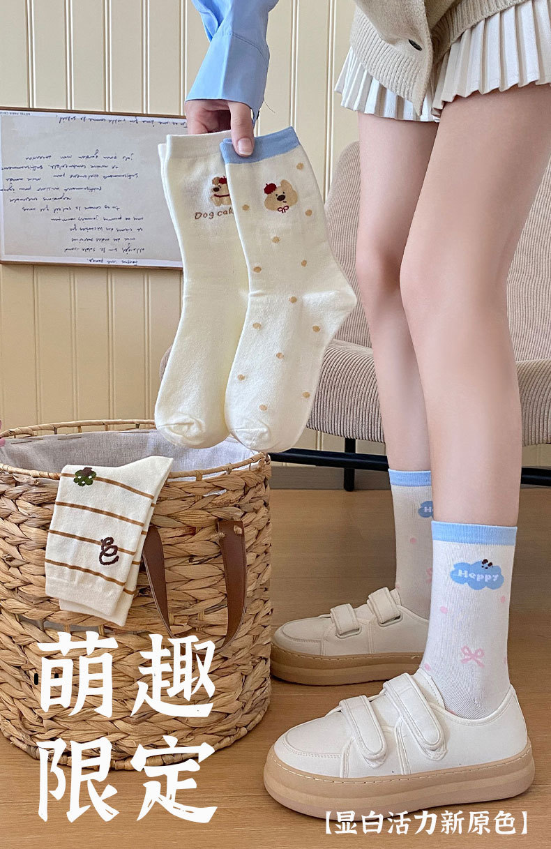 여성용 귀여운 강아지 리본 순면 중목 양말, 봄 여름용 흰색 면 소재, 대학 스타일 만화 여성 양말스토어 가기